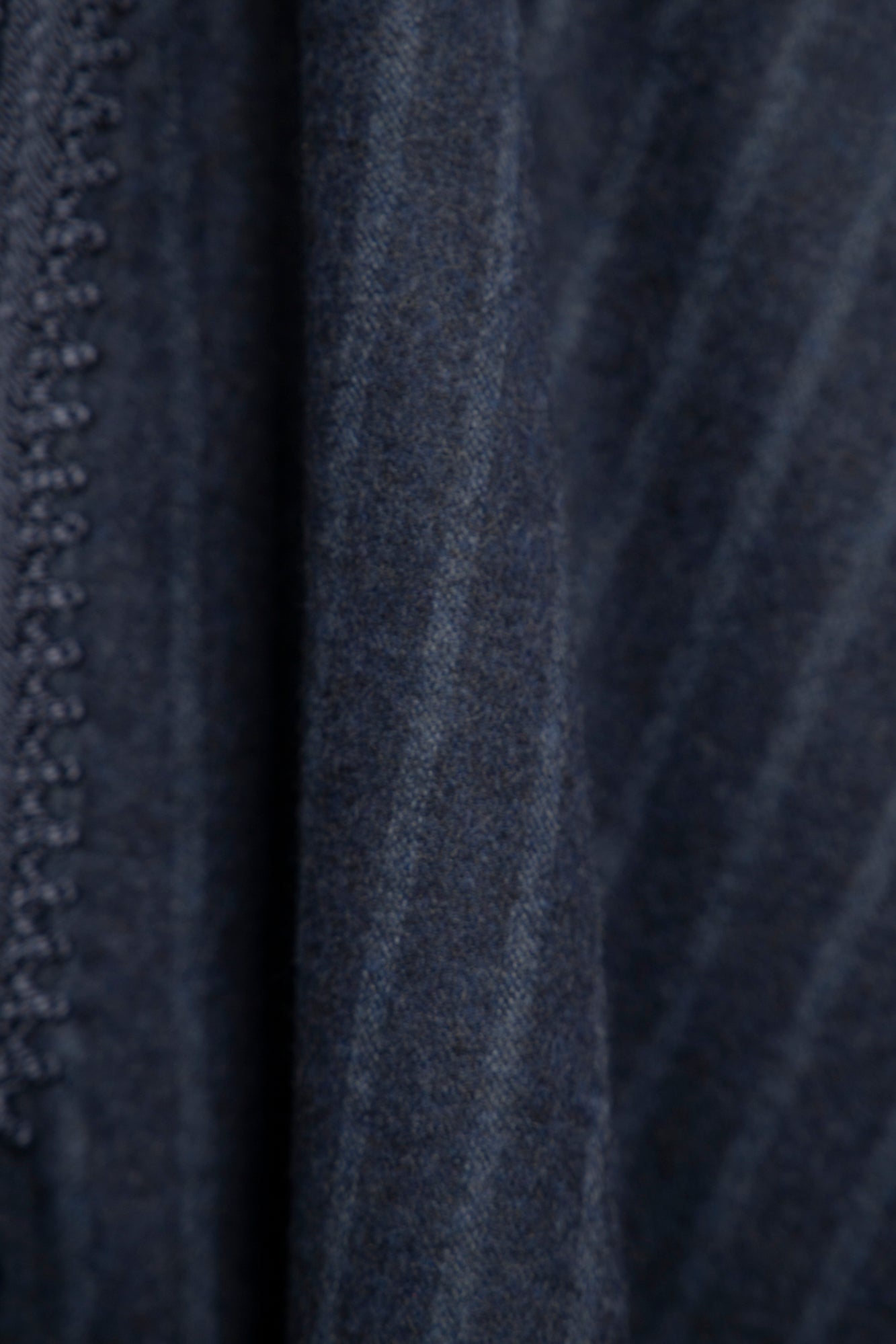 Details: blue wool poncho with fringe hem and tassels