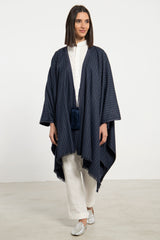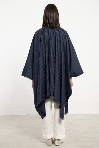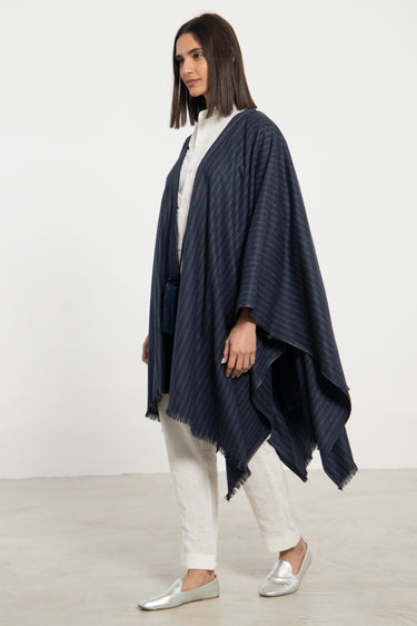 Wool & Cashmere Navy Striped Poncho