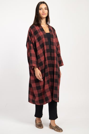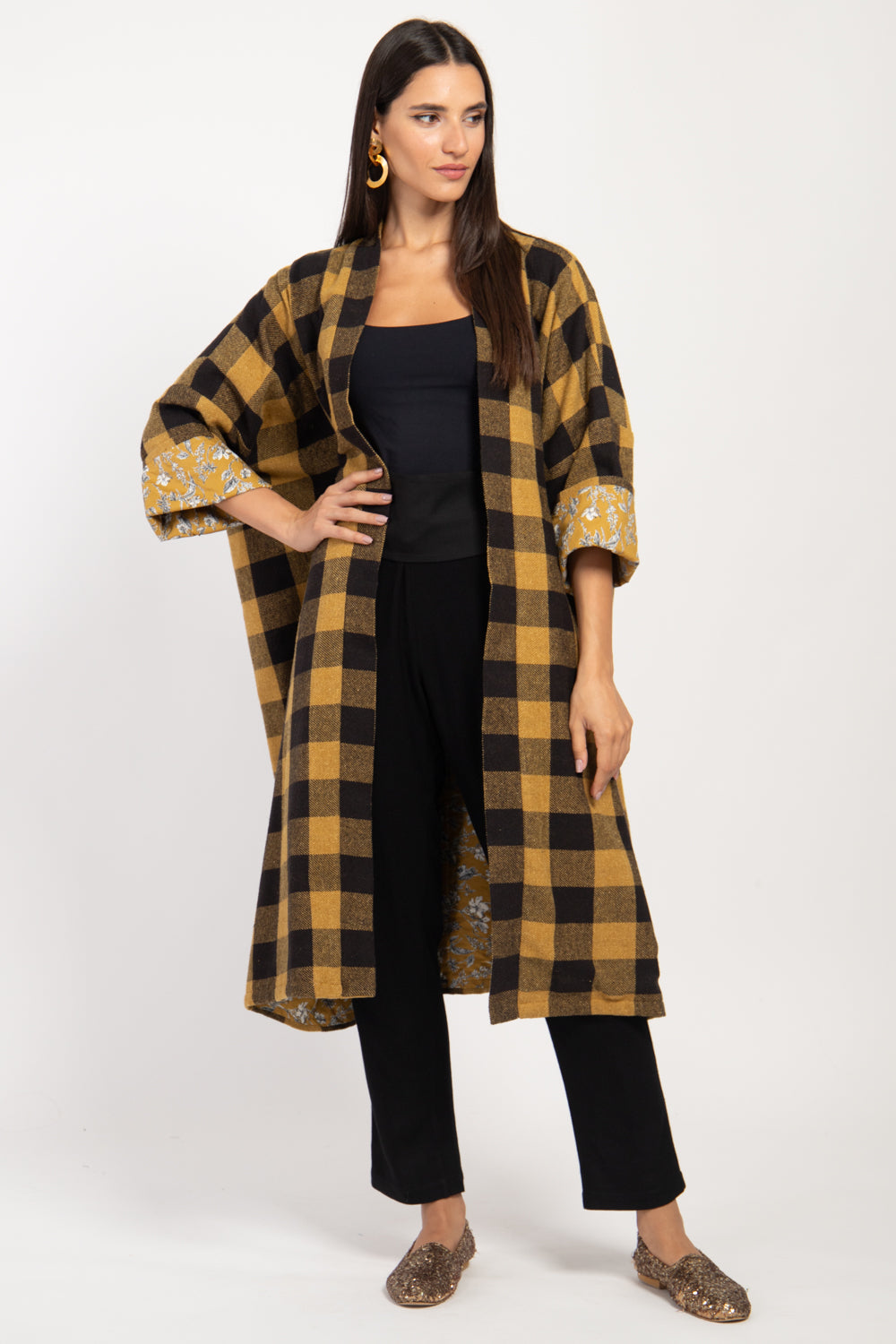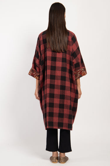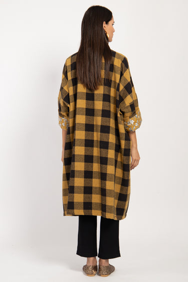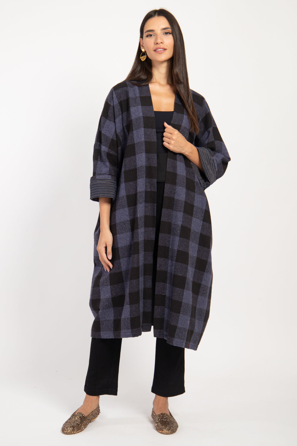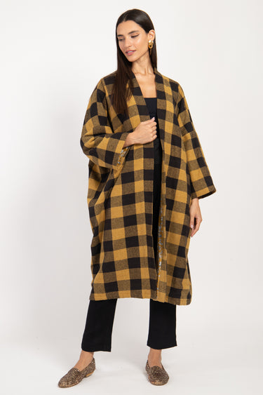 Crafted from pure wool with a checkered pattern and featuring long sleeves with a cotton lining, this coat-style abaya is cut midi length. Wear your over your favorite pair of jeans to elevate your style.