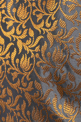 • Fabric: Structured yet soft brocade with golden floral motifs