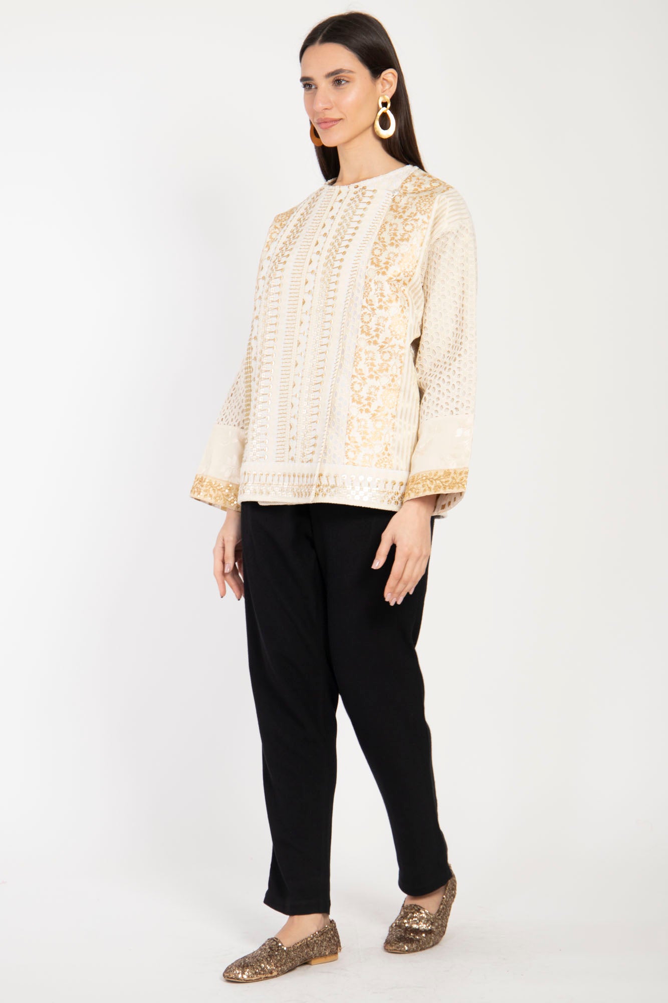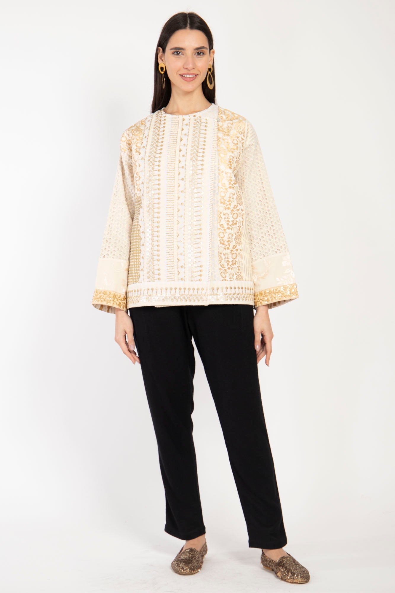 Hanadi Cotton & Silk Brocade Gold Jacket