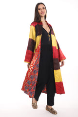 Mina Silk Ikat Red & Yellow Coat