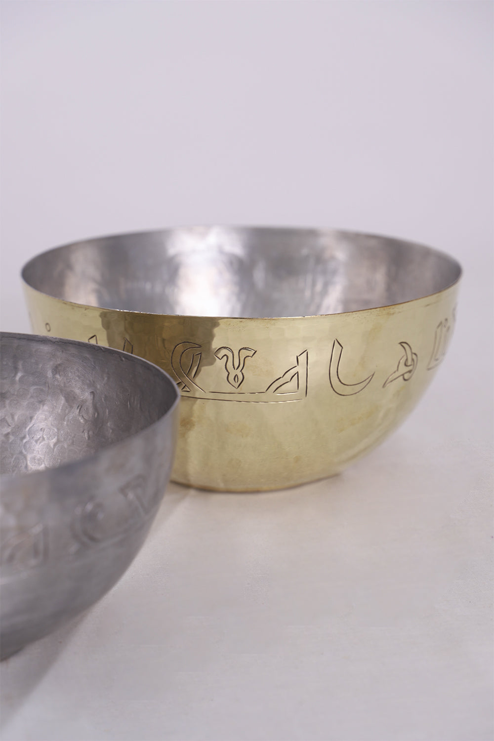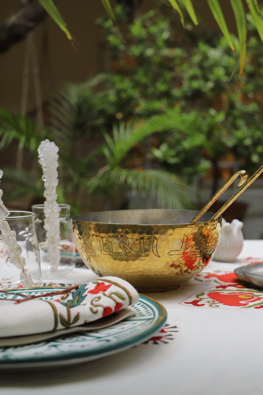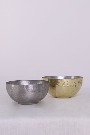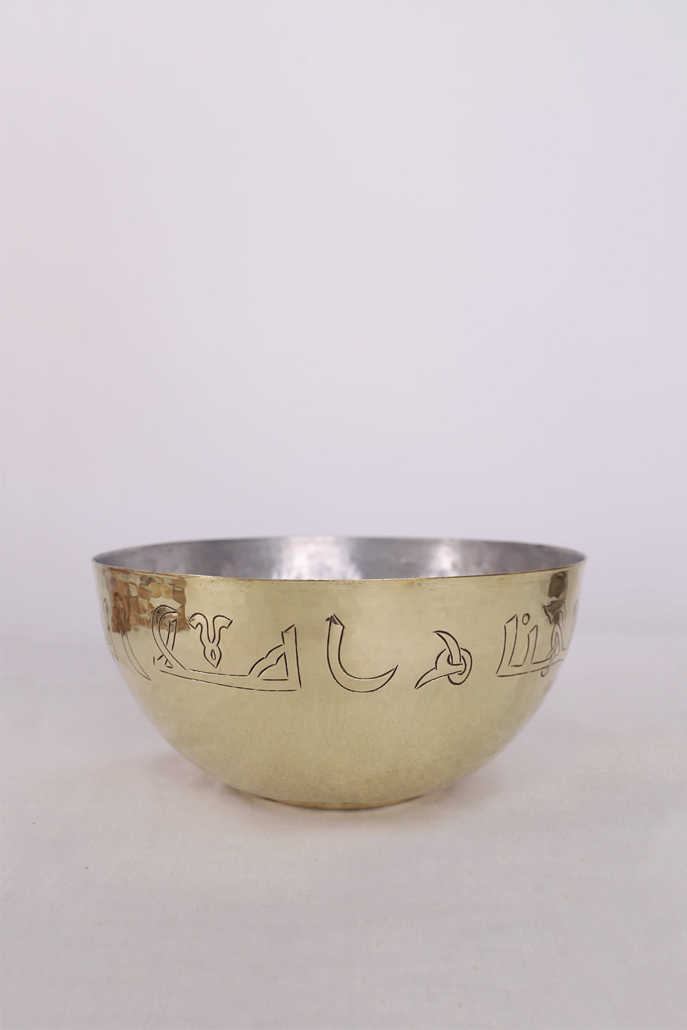 This gorgeous Kufi Bowl features a brass construction and ornate calligraphy to bring a unique touch to your entertaining. Perfect for your parties and holiday gatherings, this piece will be sure to elevate your table.