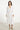 The Jamila dress is crafted from luminous crushed cotton velvet in a soft white tone, elevated with golden brocade trim at the neckline and cuffs. Its flowing cut and refined detailing offer an effortlessly elegant silhouette.
