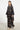 The Kawthar Dress is crafted from black silk dupioni with a delicate floral print and adorned with intricate hand embroidery in sequins and thread. Its relaxed silhouette and embellished chest panel highlight both texture and craftsmanship.