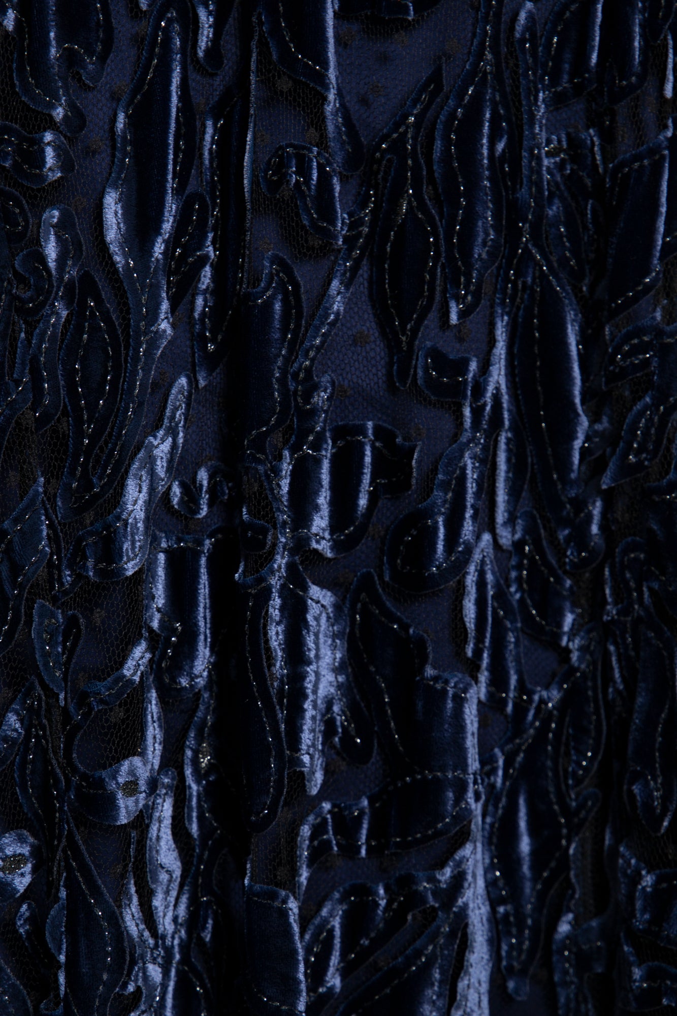 Fabric: Navy velvet devoré with sheer detailing and floral pattern
