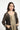 Details: Scoop neckline, long sleeves, ankle-length open-front dress with gold border detailing and subtle back pleat