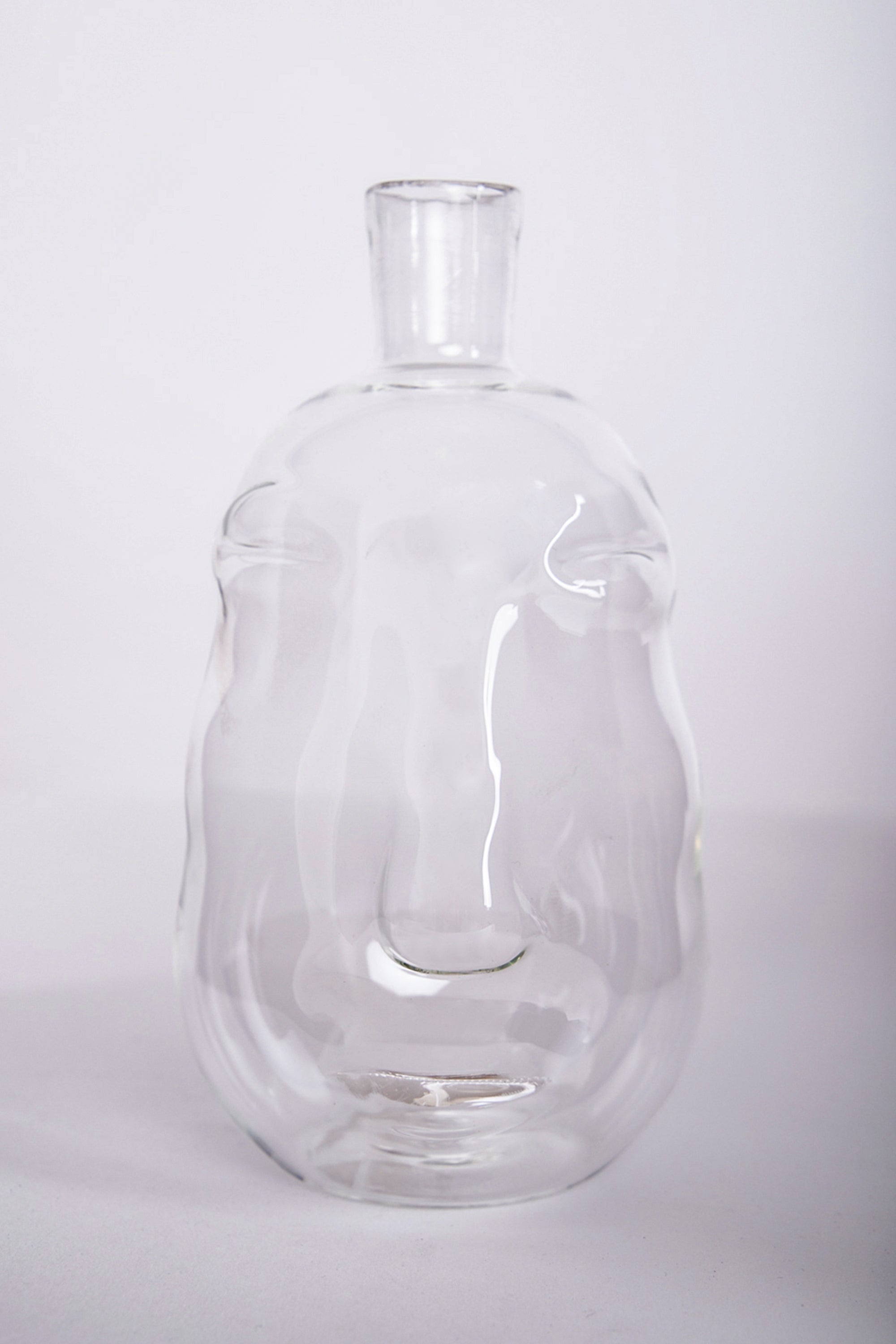 Handmade by our artisans, this carafe features a whimsical hand carved face.