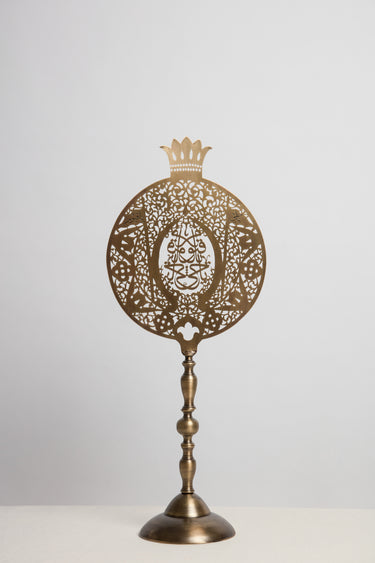 Originally crafted to ornate domes of mosques, these Alems have been revisited to embellish corners in homes. Combining blessings and an array of classical islamic ornaments, these Alems are made of cast and chiseled brass.