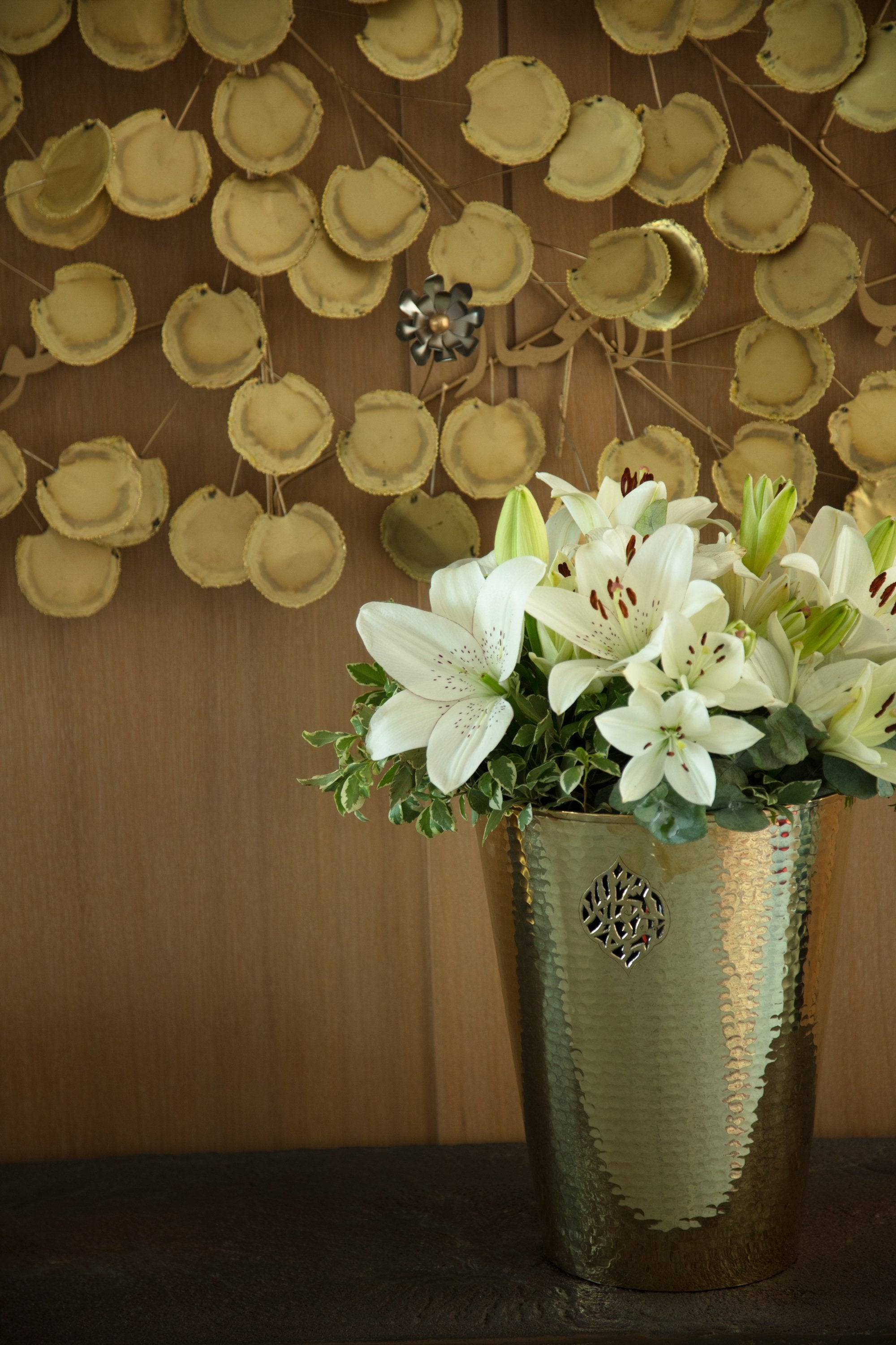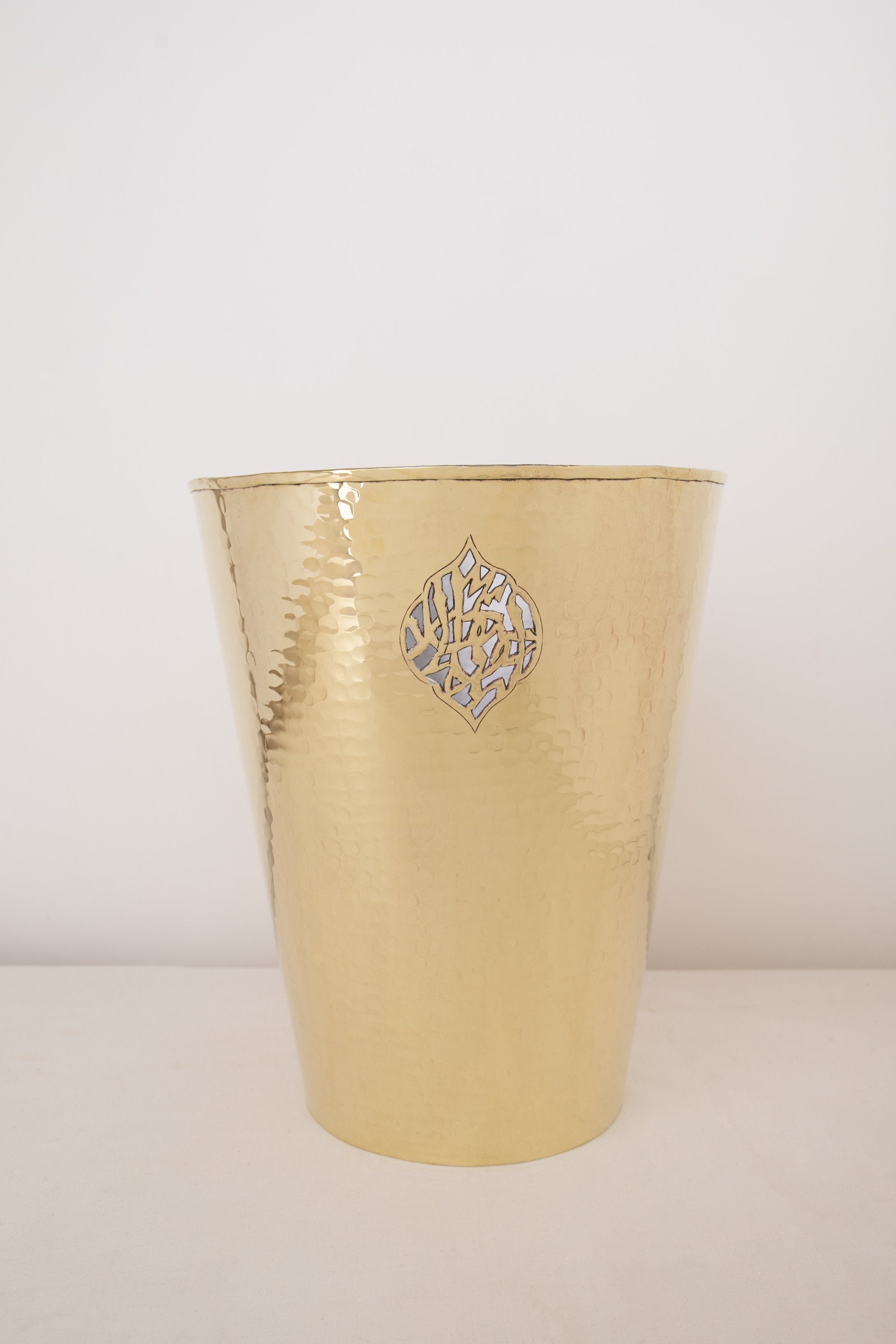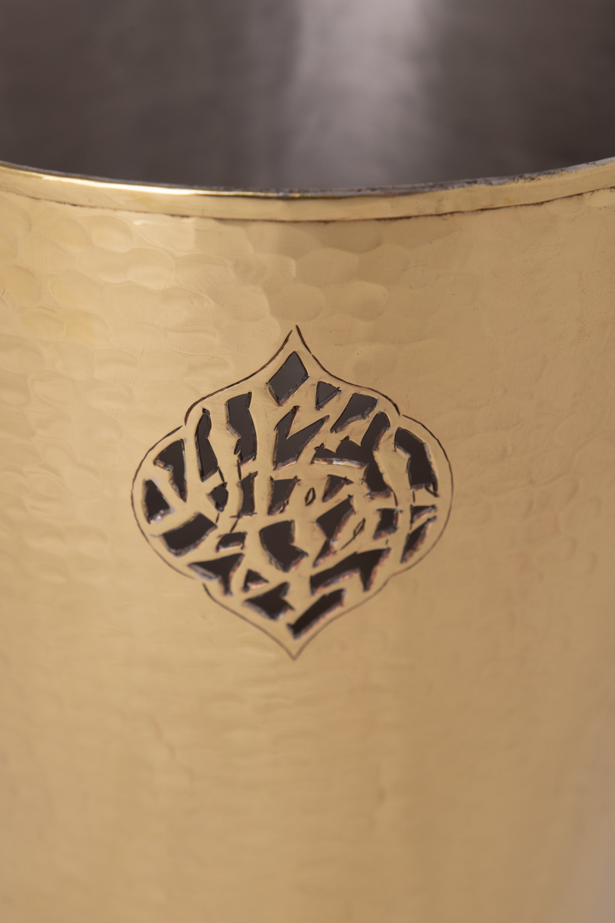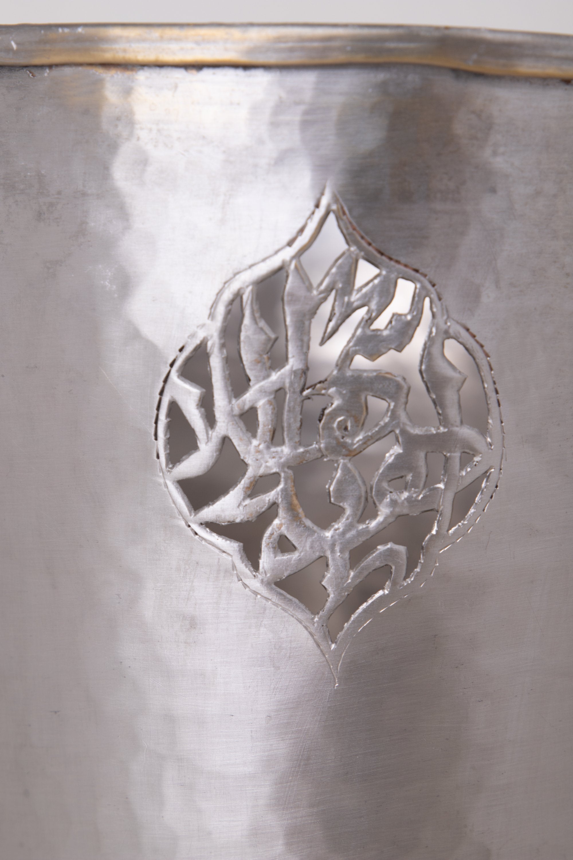 Hammered metal? So luxurious. This planter has a cut-out calligraphy available in brushed or tinned brass.