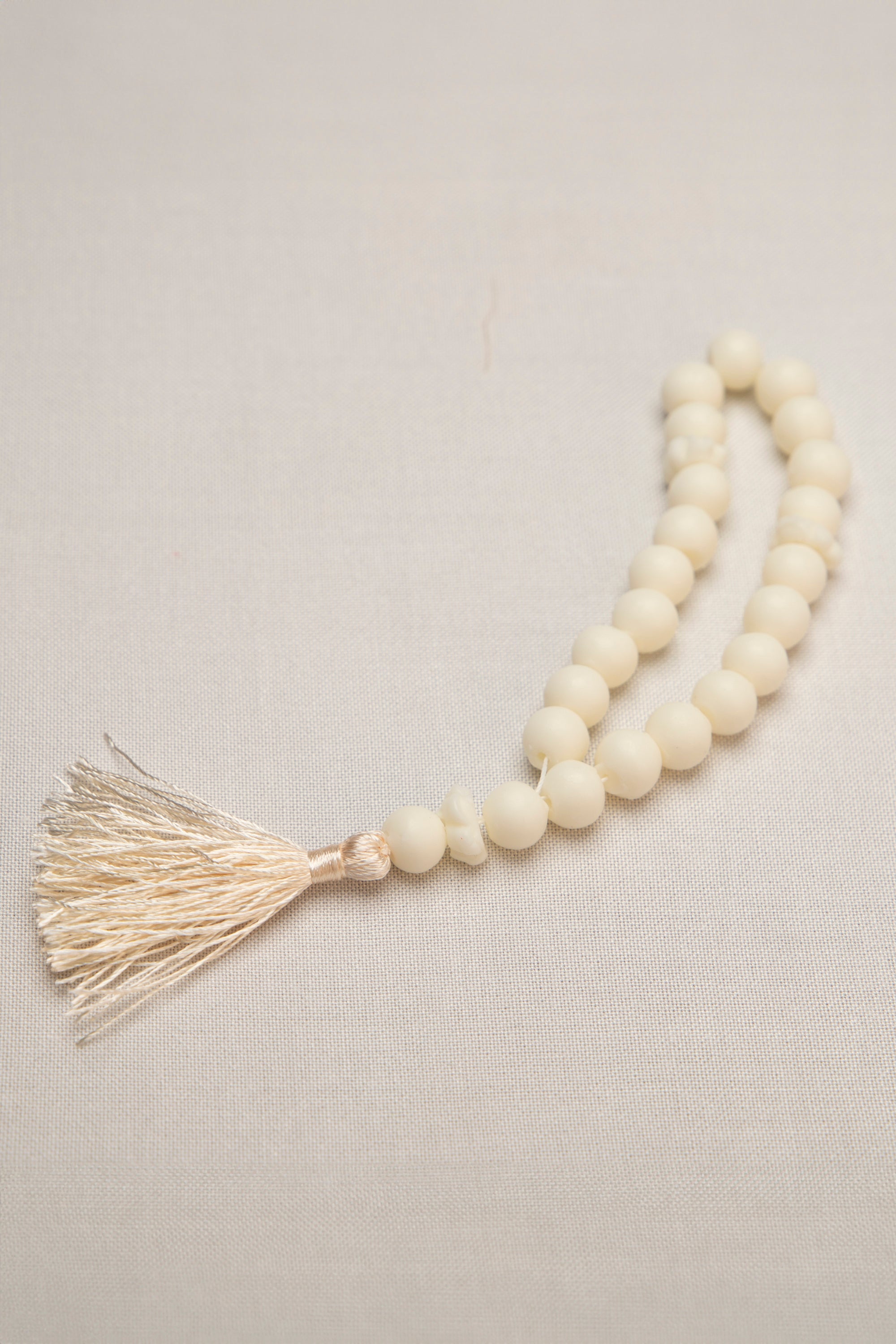 Description: Handmade soap in the form of a Masbaha with round-shaped beads and a tassel finish