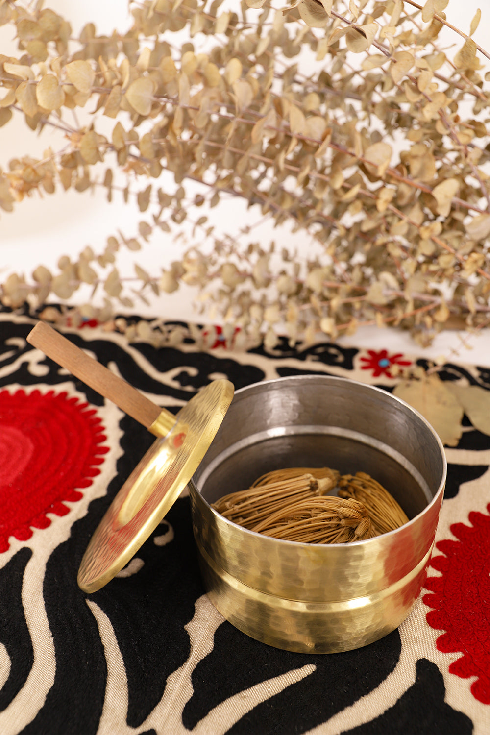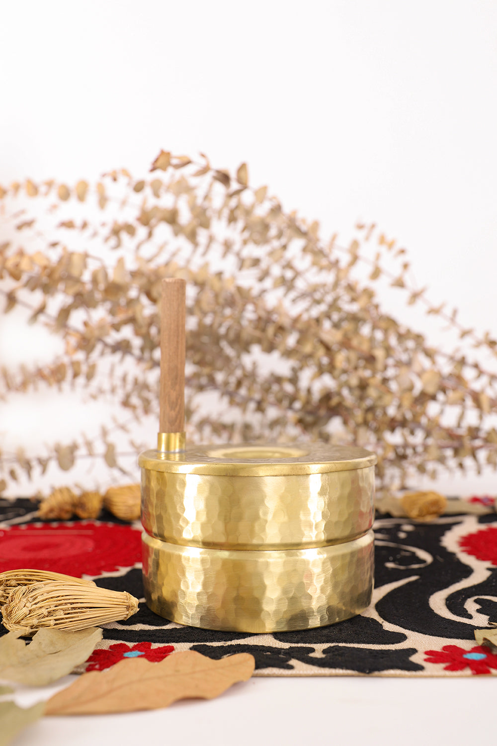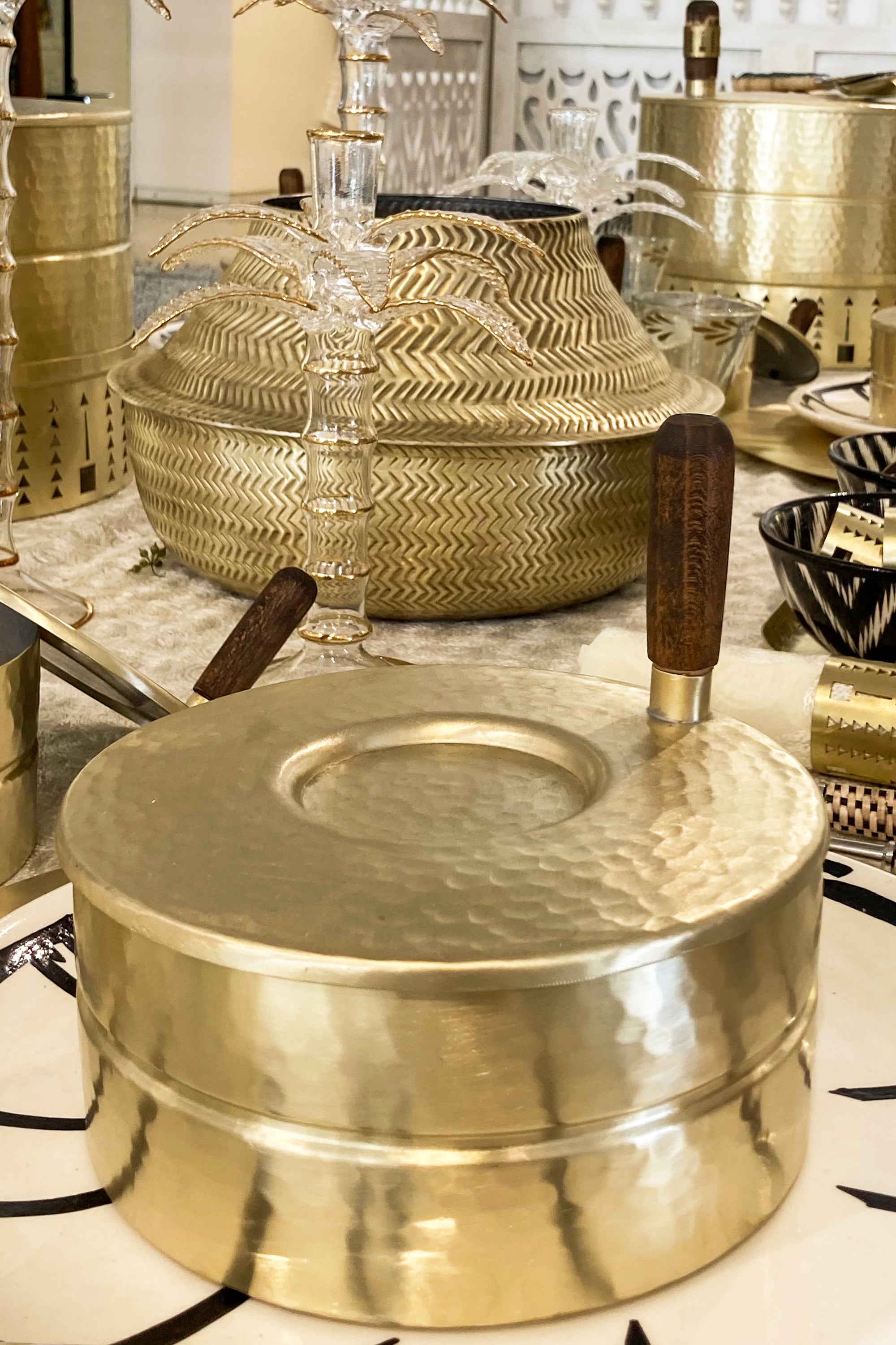Crafted with the finest brass and inspired by ancient stone hand mills of Saudi Arabia, the Raha Box is a testament to the exquisite aesthetics of our region. This hand-carved hand-made piece adds a touch of elegance to any space and is the perfect statement piece for your coffee table.