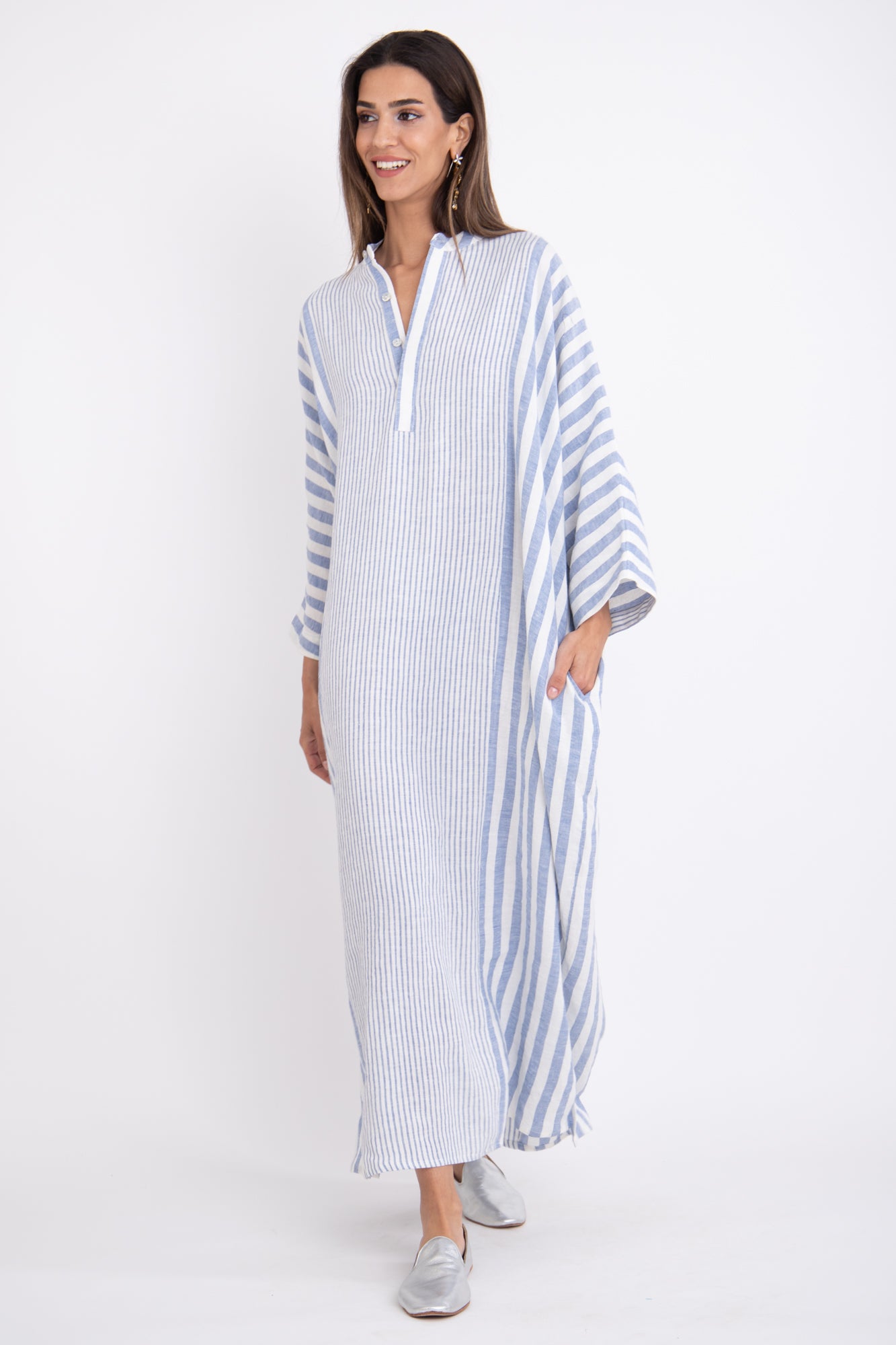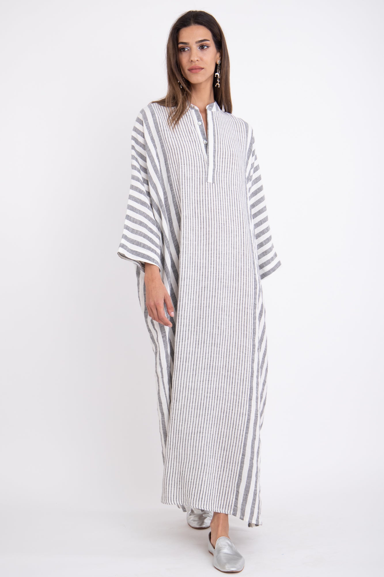 Refresh your look this season and stand out in the Frankie Linen Jellaba. This hand-crafted, linen design is adorned with timeless stripes to bring a touch of elegance no matter where you go - perfect for summer days spent relaxing outdoors or at the beach.