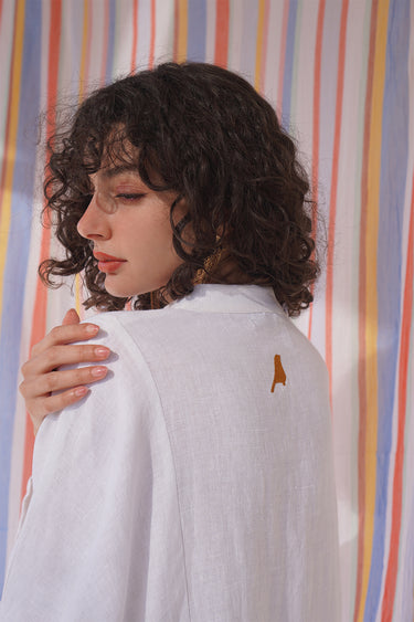 Refresh your look this season and stand out in the Frankie Linen Jellaba. This hand-crafted, Belgian linen design is adorned with a timeless bird embroidery on the back.
