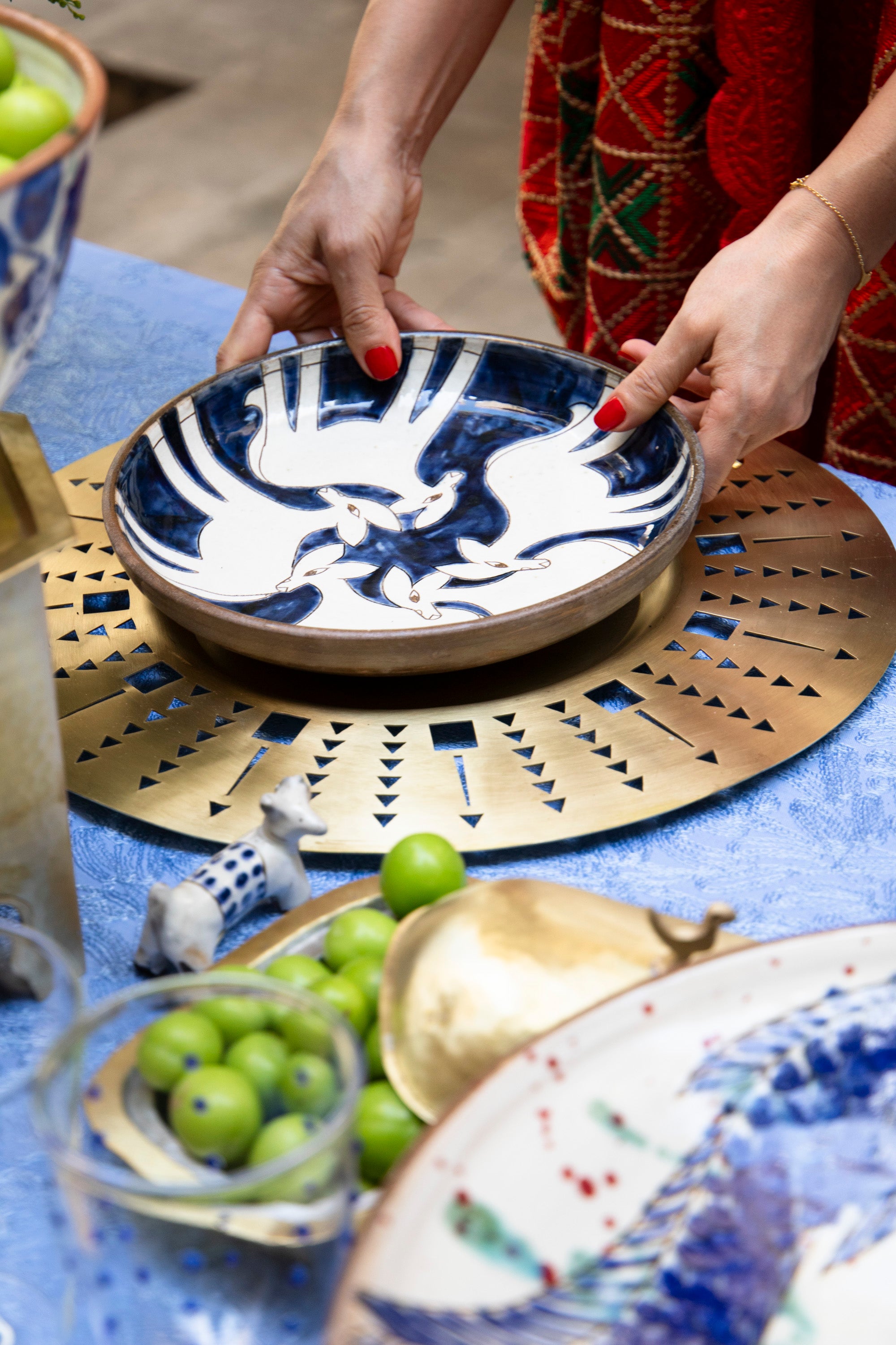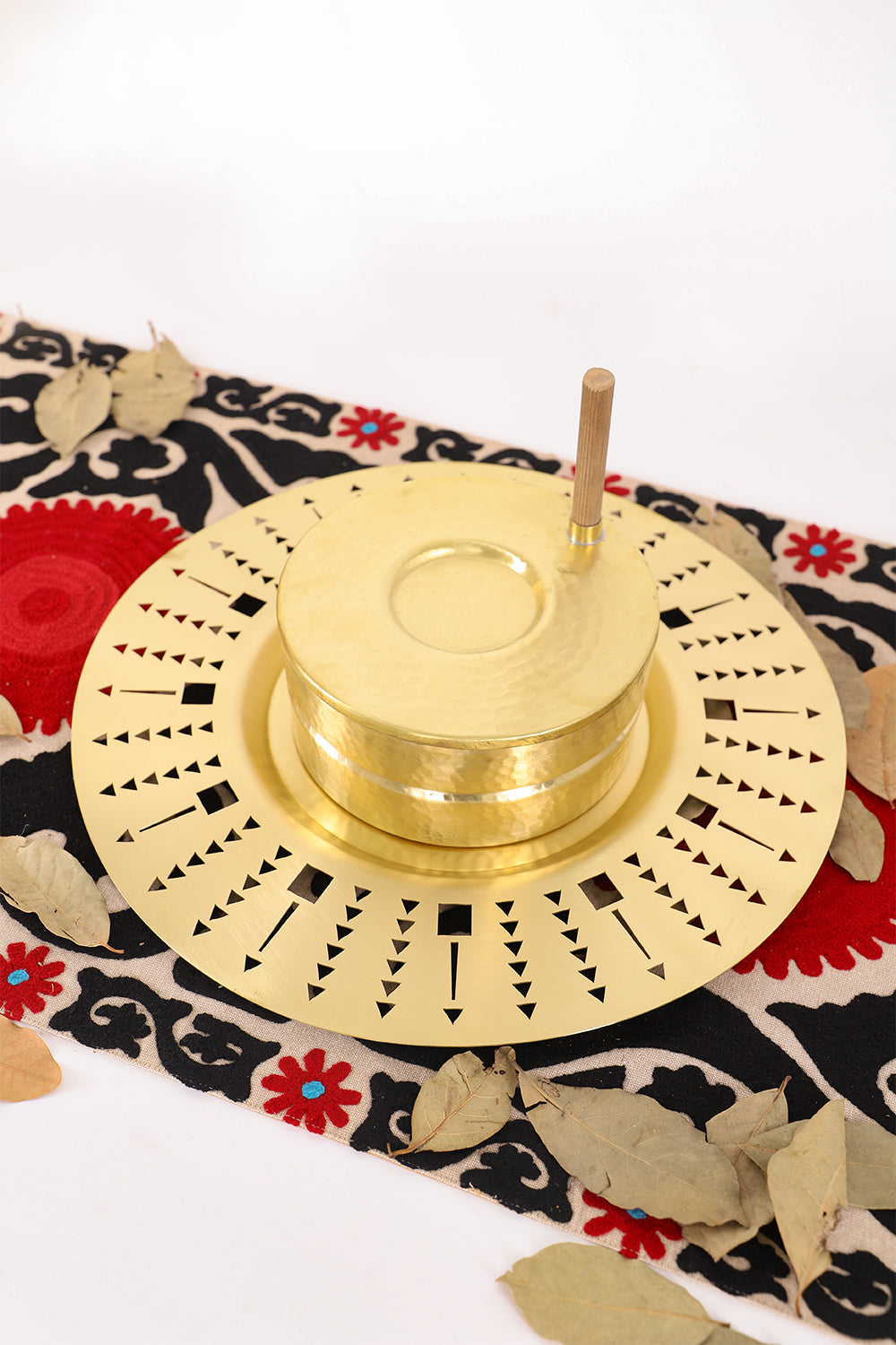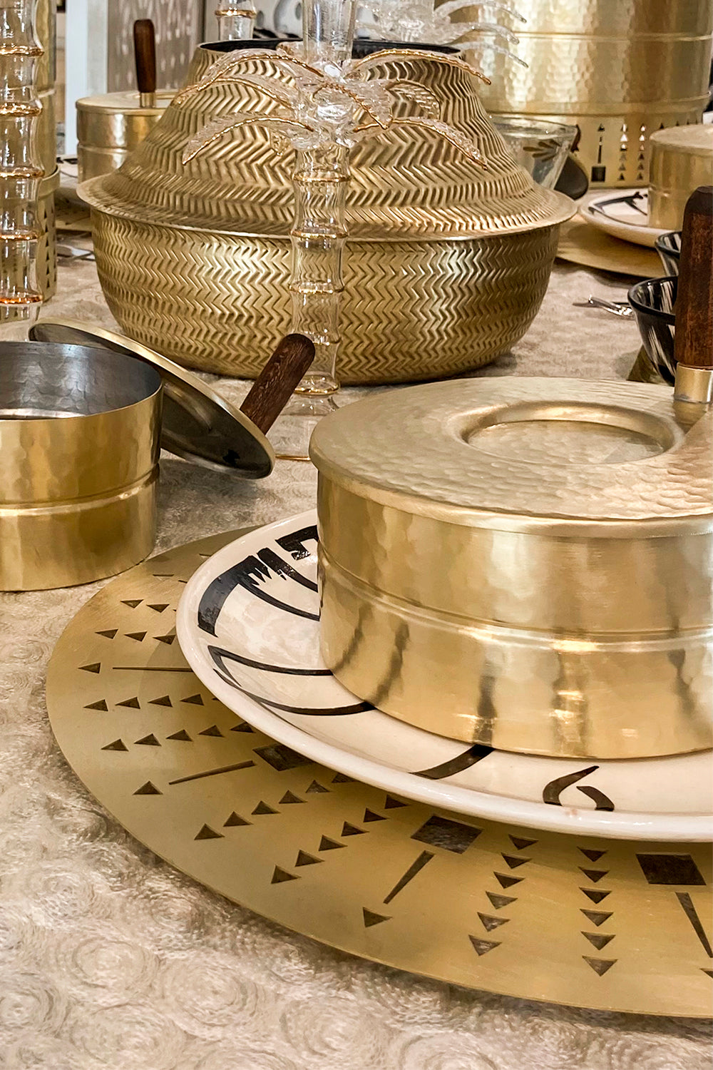 Elevate your dining experience with our handmade Mujj Service Plate designed in collaboration with Samer Yamani. Crafted from handmade brass, this charger plate features a hand openwork design, adding an elegant touch to any table. Indulge in the beauty of art and literature as you dine in style.