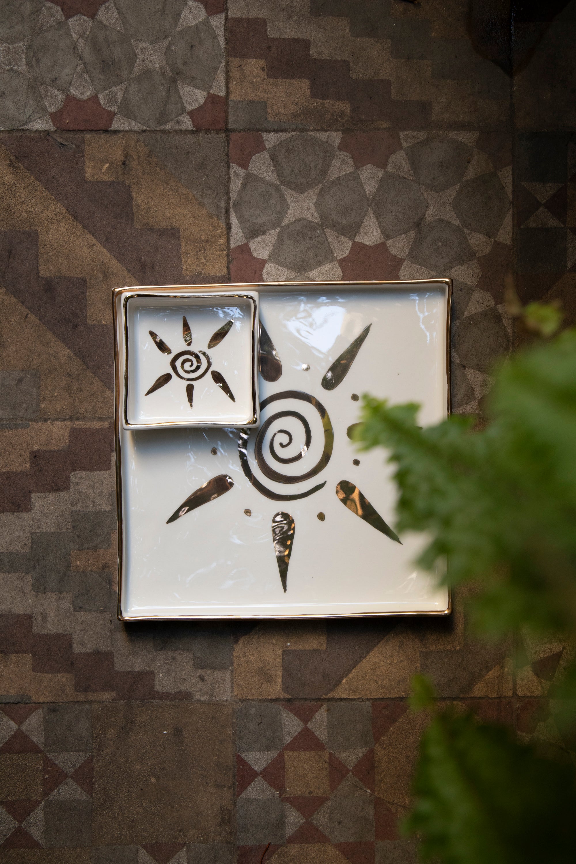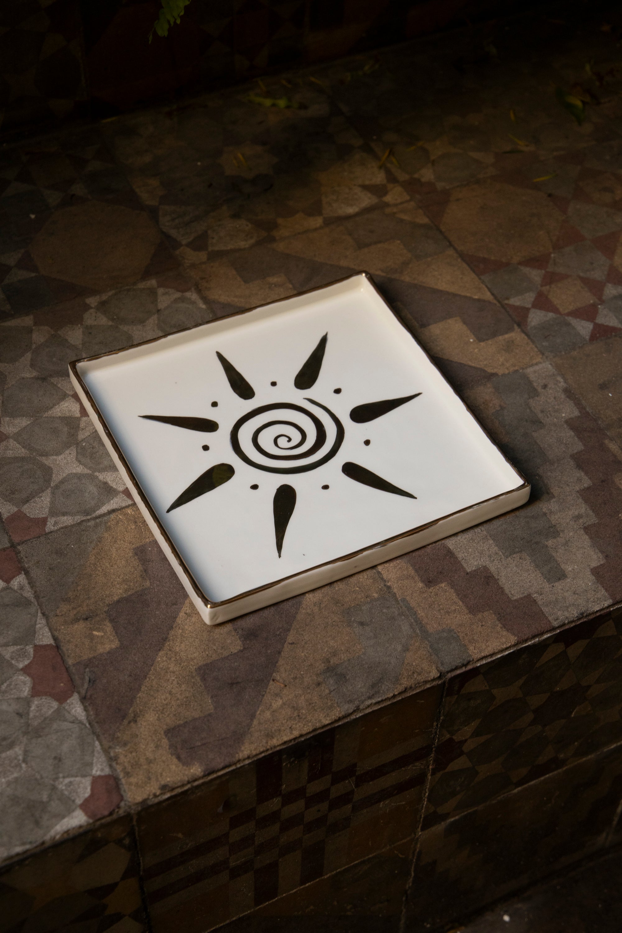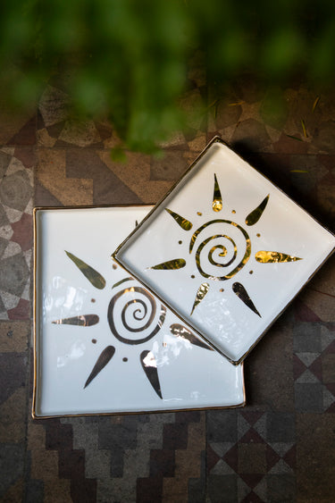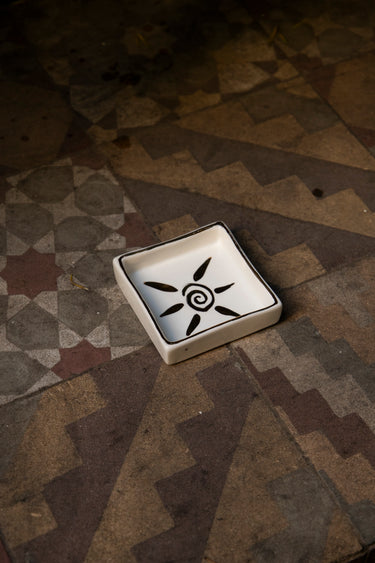 Ceramic Square Plate – Sun Motif