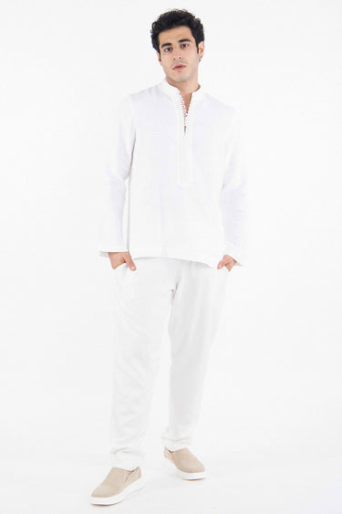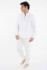 Experience the luxurious and captivating elegance of our Jawad Linen White Shirt, adorned with intricate white embroidery. Elevate your style and make a bold statement with this exquisite piece.