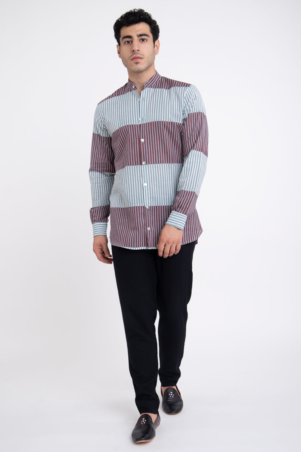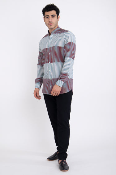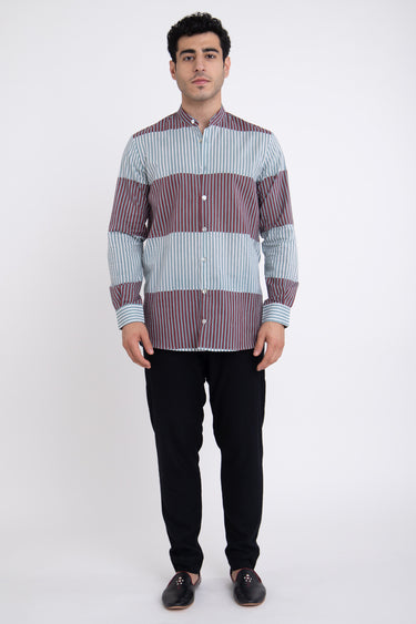 Philippe Cotton Blue & Burgundy Shirt
