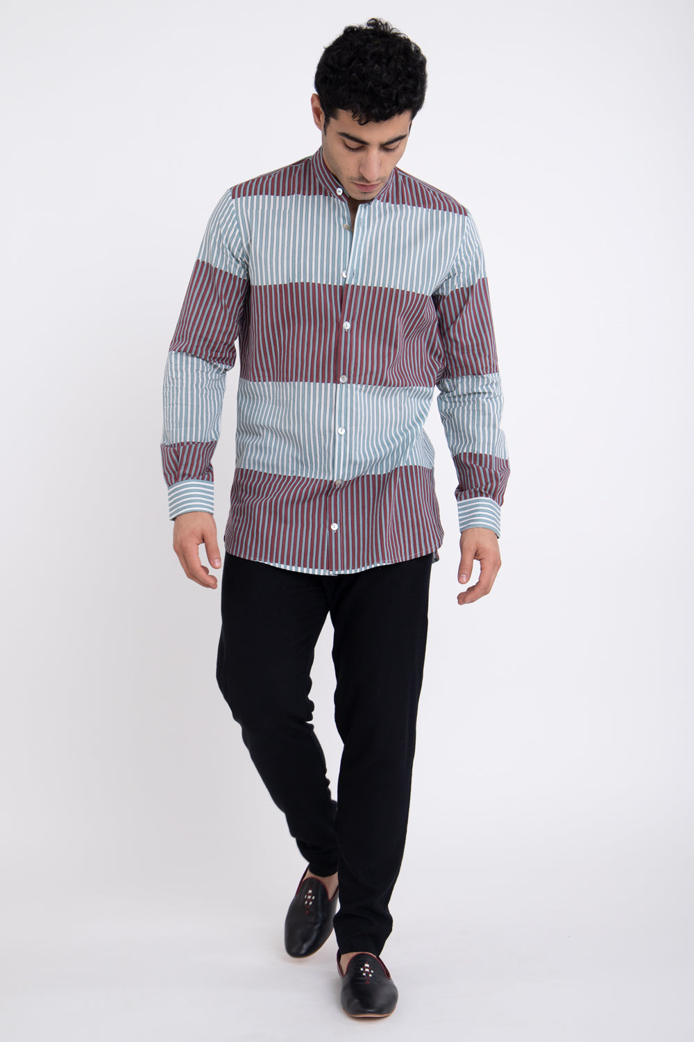 This shirt is a chic addition to your wardrobe. It has an easy-going, relaxed feel that's accentuated by the mandarin collar and a slightly loose cut.