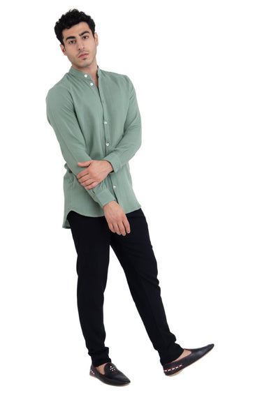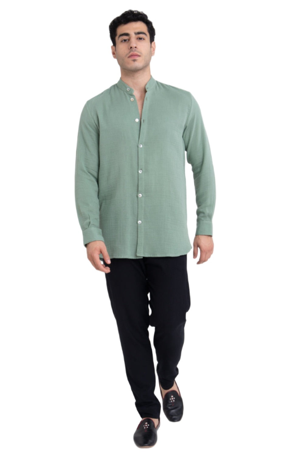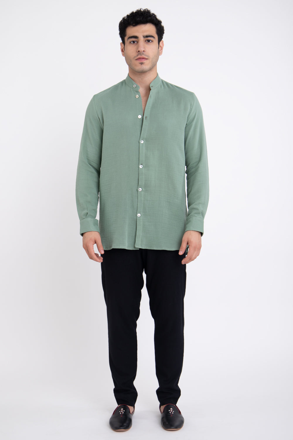 This shirt is a chic summery addition to your wardrobe. It has an easy-going, relaxed feel that's accentuated by the mandarin collar and a slightly loose cut.