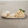 Description: Includes 1 square soap (randomized scent), 1 bird soap, 1 pomegranate soap, and 1 grape soap on a bed of natural dried loofah fibers, arranged in an oval brass tray