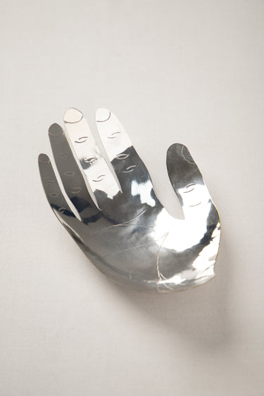 Part of the Echo Collection – This handmade brass hand serves as a container for trinkets or simply as a decorative item. The hand comes in two different finishes, brush brass or dipped in silver.