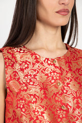 The Lili Brocade Gilet offers a sophisticated way to stand out. Crafted from luxurious silk brocade, it's an elegant choice for special occasions and formal events.