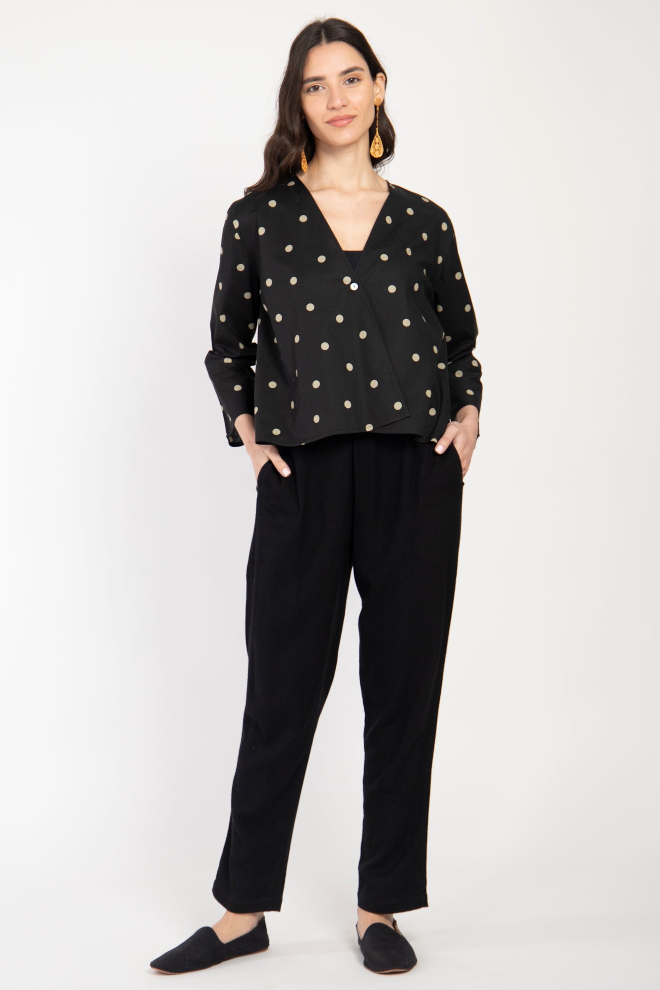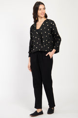 Sabah Cotton Dots Black Blouse