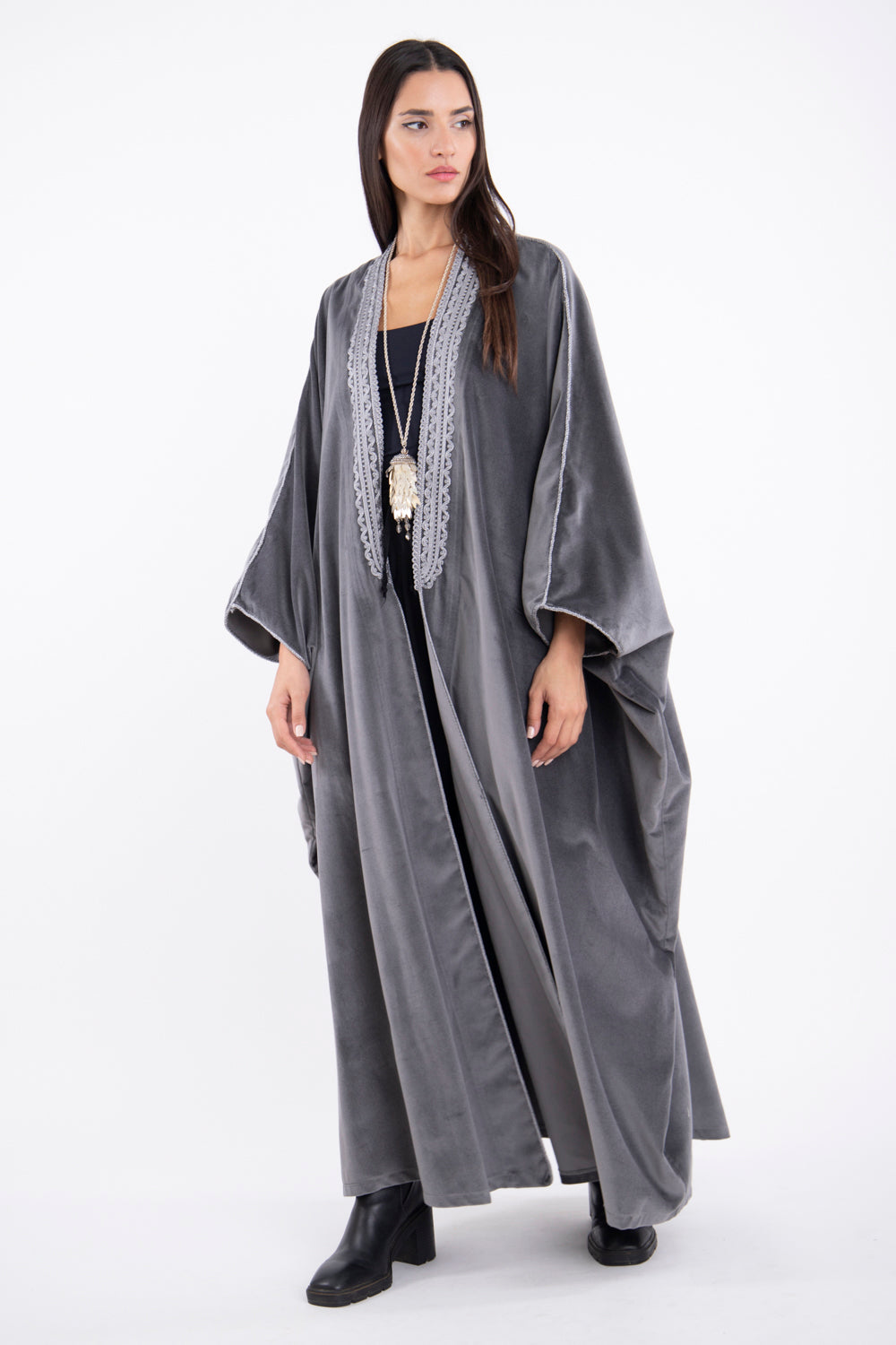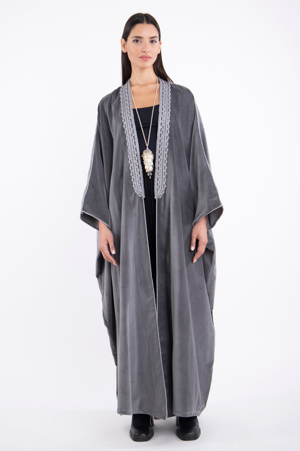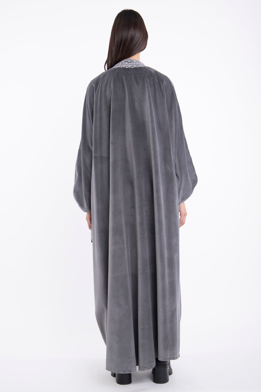 Step into winter with luxurious warmth and elegance. This abaya is crafted from the softest silk velvet to give you a cuddle of comfort while its hand embroidery and tassels elevates your presence like never before - perfect for those cozy evenings around the fireplace.