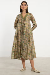 Jamila Printed Silk Green Floral Dress