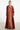 Details: Burgundy silk dress with golden embroidery and flared silhouette