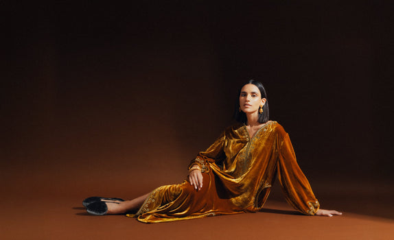Farah Silk Tie & Dye Tareq Embroidered Gown – Gold