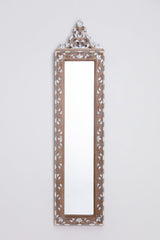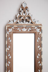 Classic yet modern, our crown mirror sits on the wall with attitude. Entirely handcrafted with mother of pearl inlay in a flower like pattern, the edged thin band creates a bold border around the reflective glass. Our exclusive walnut wall mirror is an understated essential in the entryway, above the mantel or in a hallway. Make it a set of two for a more captivating combo.
