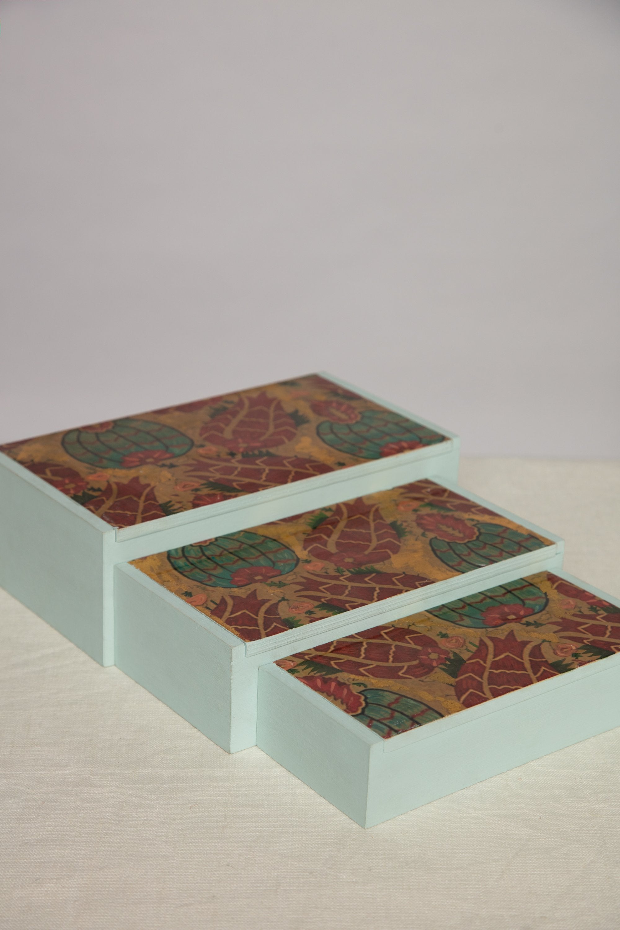 These beautifully crafted boxes in wood with hand painted pomegranate design are inspired by islamic art forms with a modern twist.