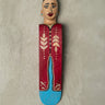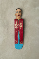 Description: Wooden door-stopper available in male or female figure, painted in vibrant traditional colors. Dimensions are approx 20x4 cm.