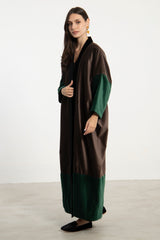 The Sherif Abaya is a voluminous silhouette crafted from plush velvet in a rich tri-tone palette of black, green, and brown. With fluid drape and tonal contrast, this free-size piece brings depth and elegance to any layered look.
