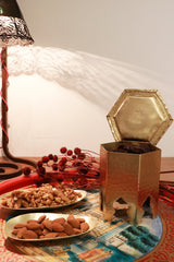 Octagonal shaped box with pure oriental curves mimicking classic oriental tables. Perfect as a decorative item on a coffee table or as a storage box for trinkets and jewelry.
