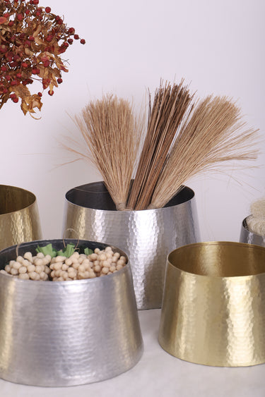 Hammered metal? So luxurious. This planter comes in three different sizes; make it a set of two or three and the different heights will become a fun focal point.