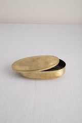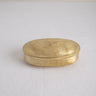This intricately designed oval box is sure to make a statement in any home. Made with hand hammered brushed brass and engraved with a bird, it's a work of art that also serves as a functional piece. Perfect for storing precious keepsakes or as a catch-all for jewelry, this box is sure to become a treasured family heirloom.