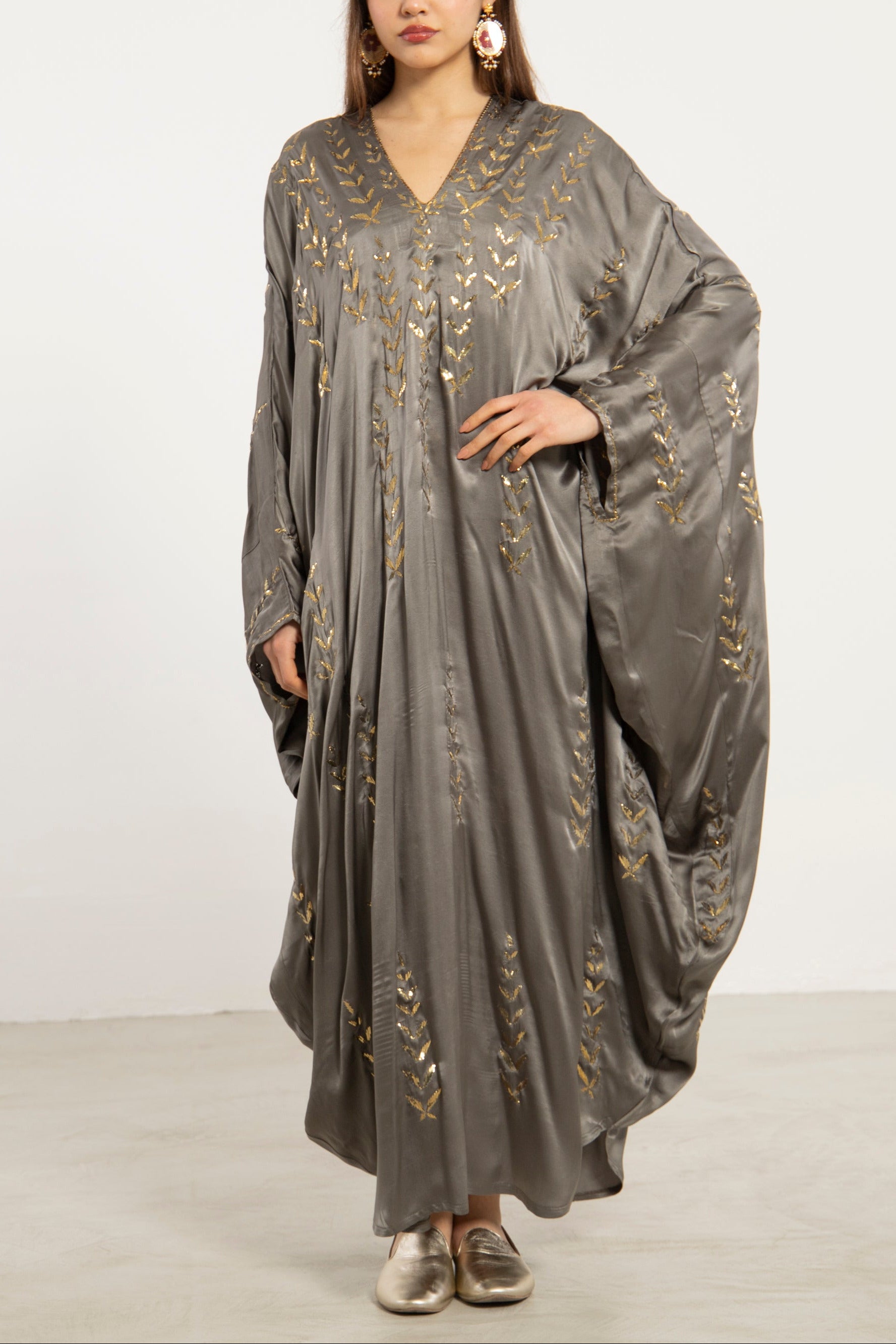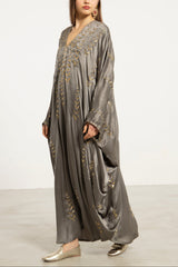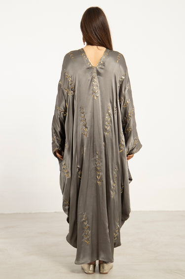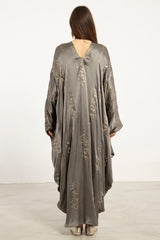Crafted from luxurious silk, our Tareq Dress exudes an air of refinement and opulence. The silver grey fabric adds a touch of indulgence and sophistication.