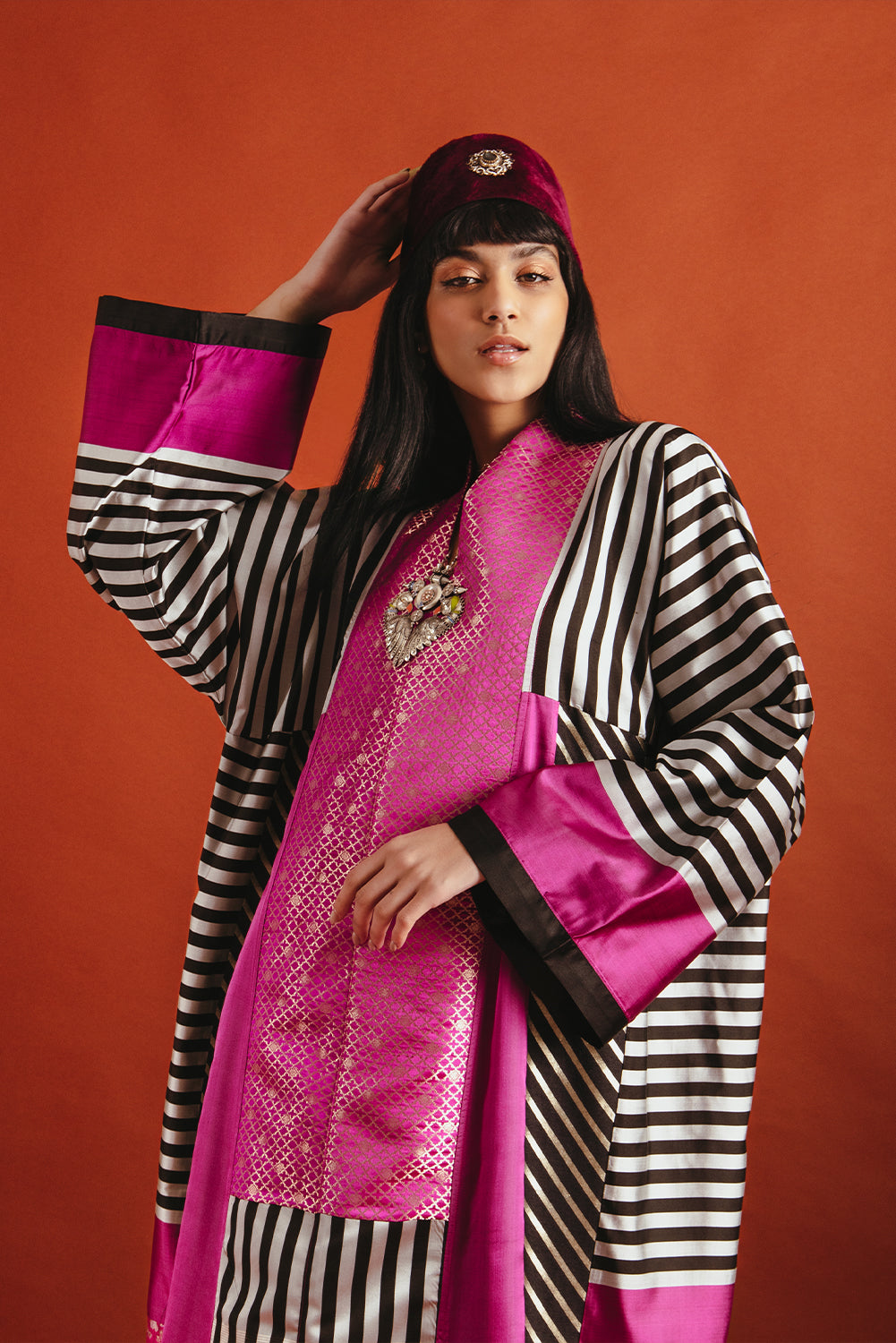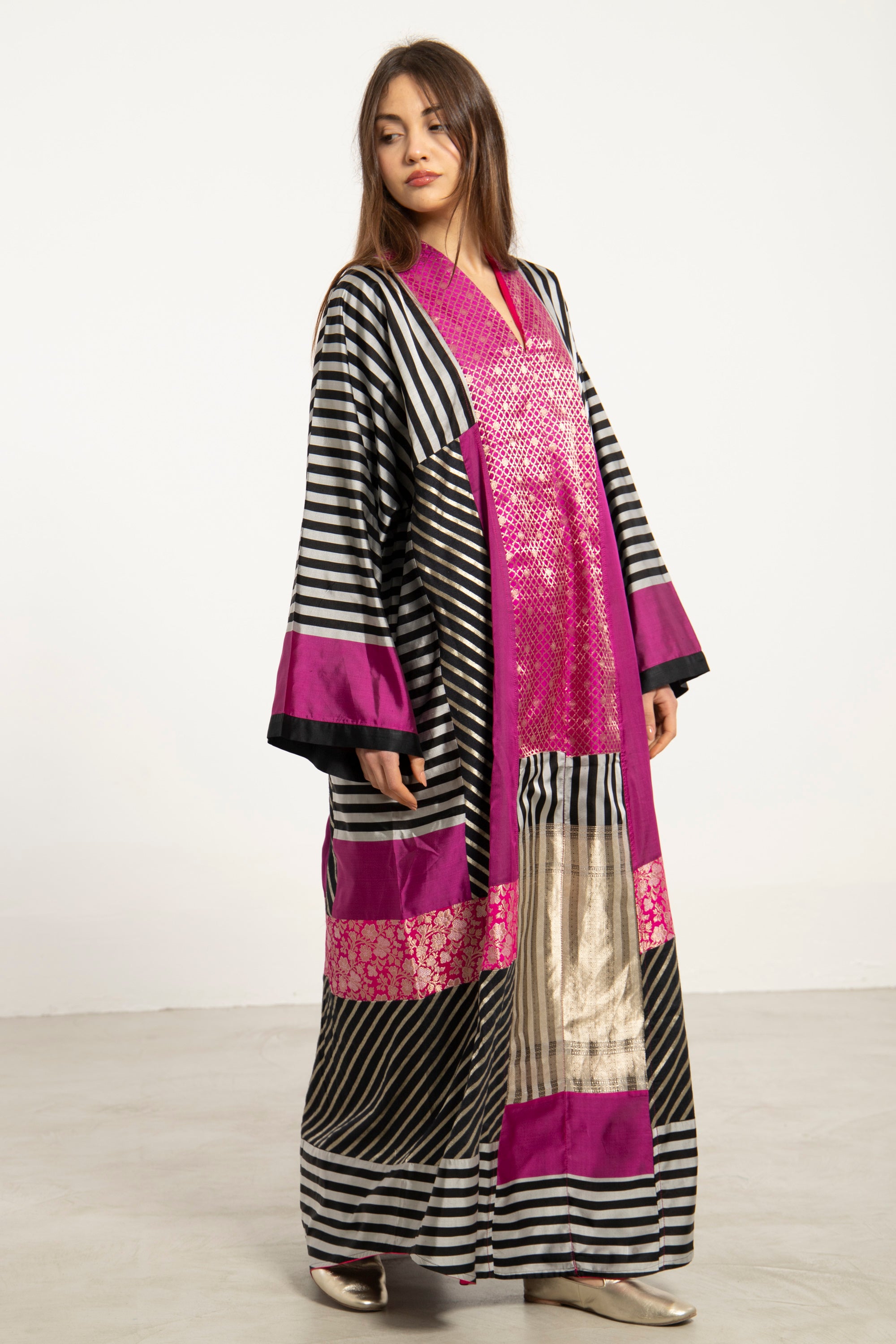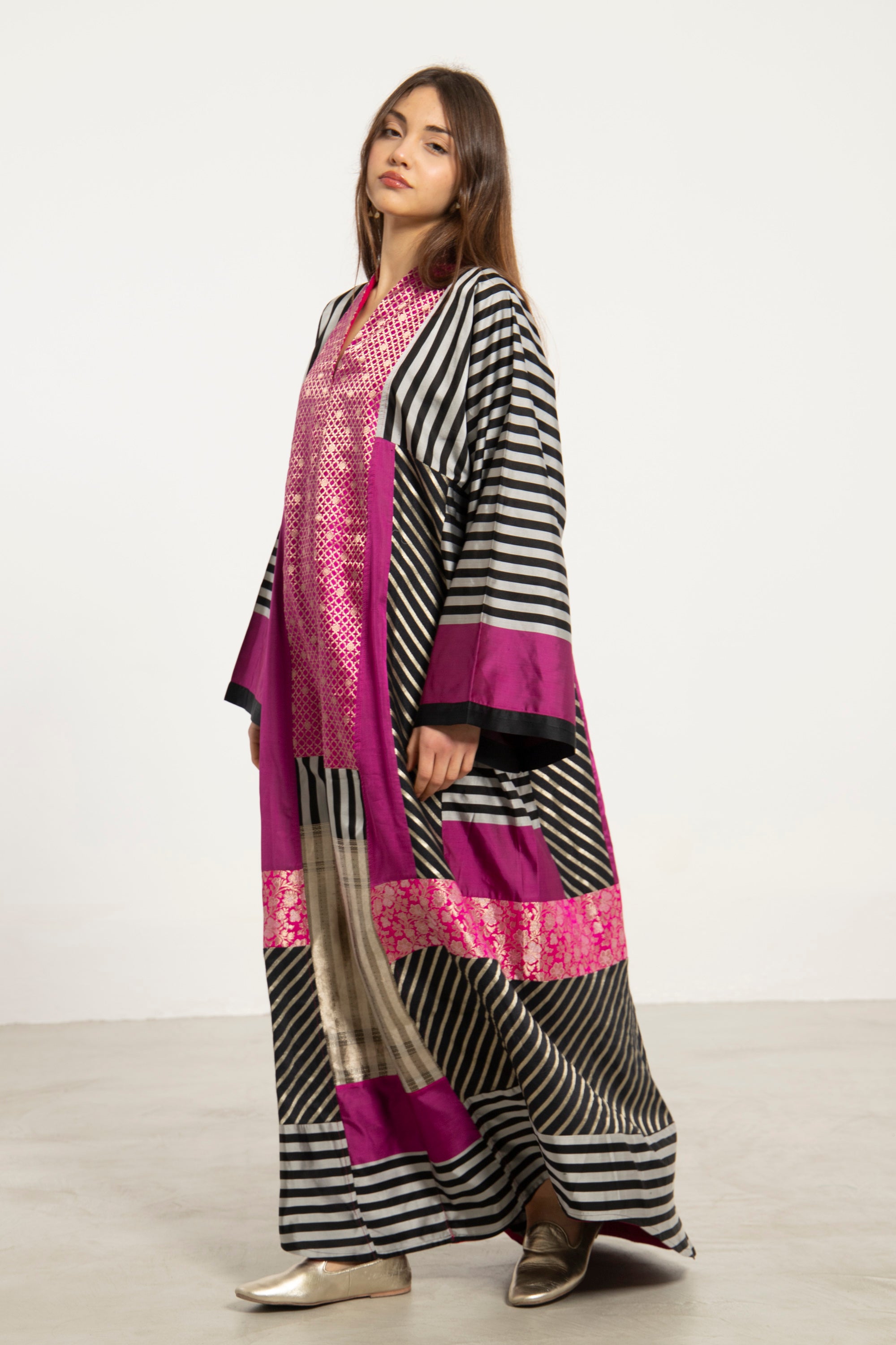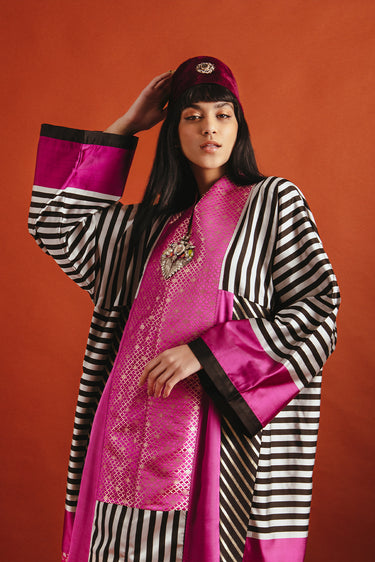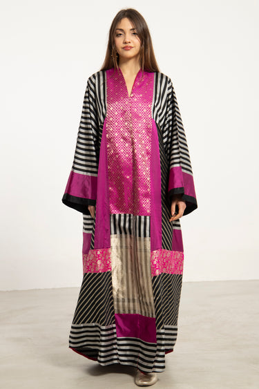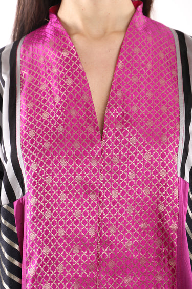 Chouf Silk Fuschia Patchwork Dress