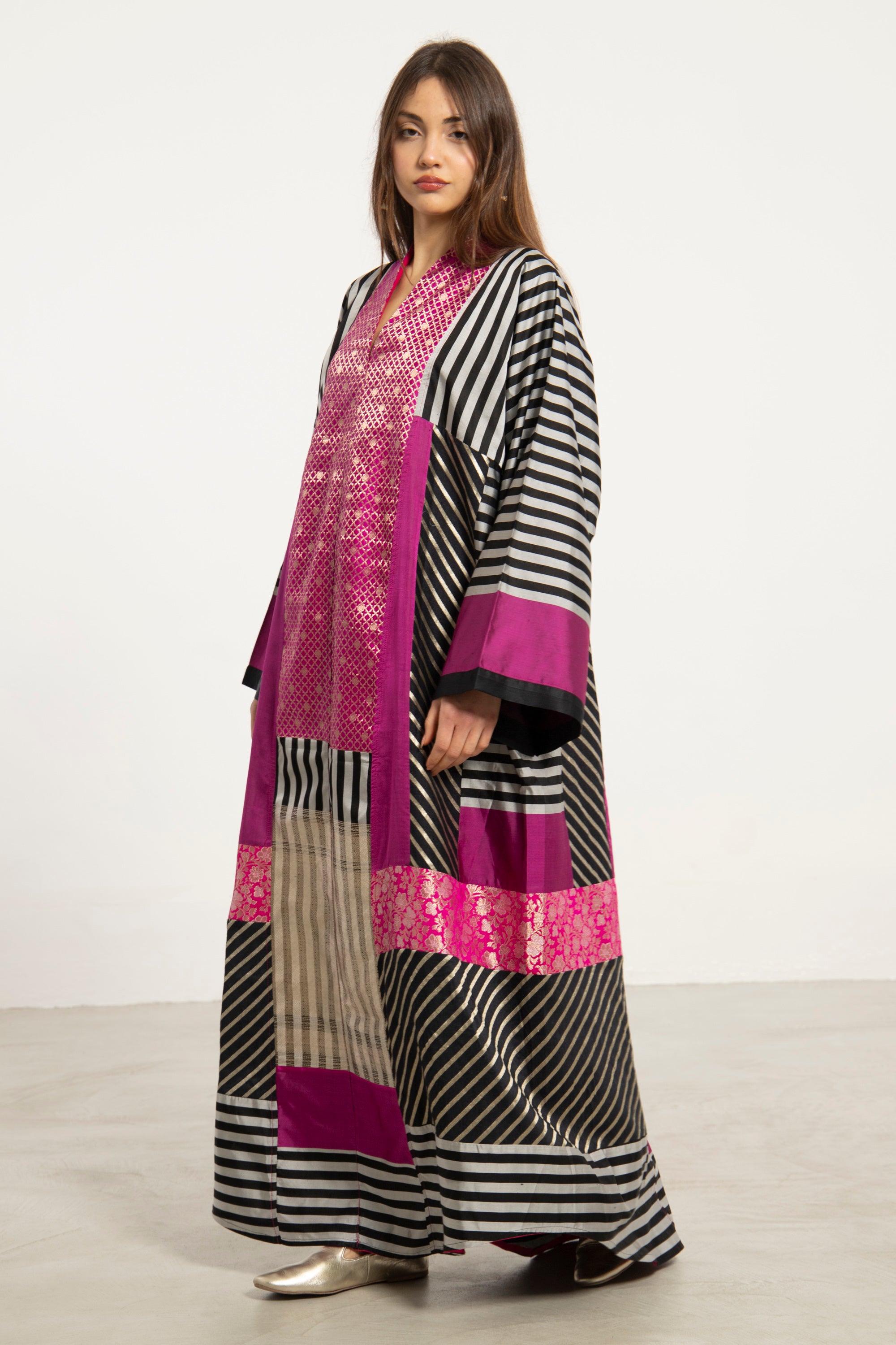 Experience the luxurious beauty of Chouf Patchwork Dress. Made with the finest quality silk and handcrafted brocade, this dress is a stunning blend of elegance and boldness.