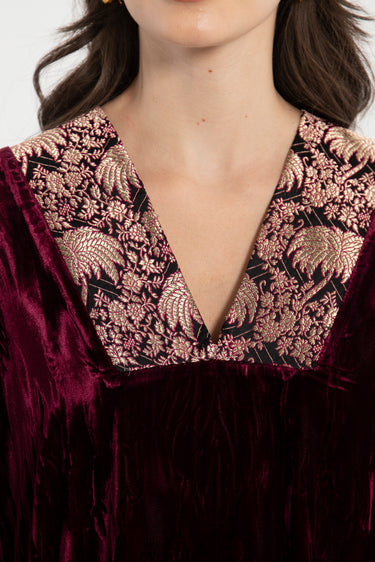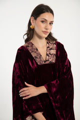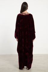 Adan Silk Velvet Burgundy Kaftan