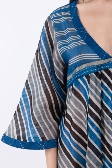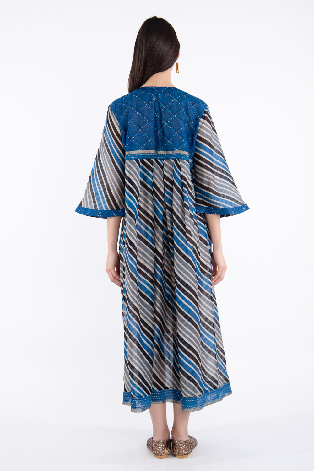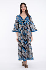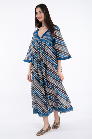 Experience effortless elegance with our Aida Silk Striped Fuchsia & Grey Dress, a perfect summer outfit designed to flatter all body types.