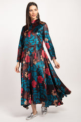Dress Angie Velvet Navy Printed Flowers Dress