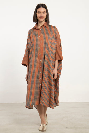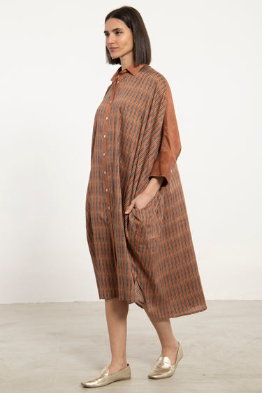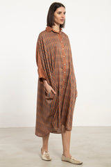 Hiba Cotton Satin Brown Dress