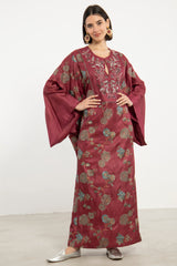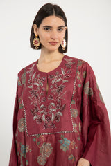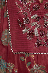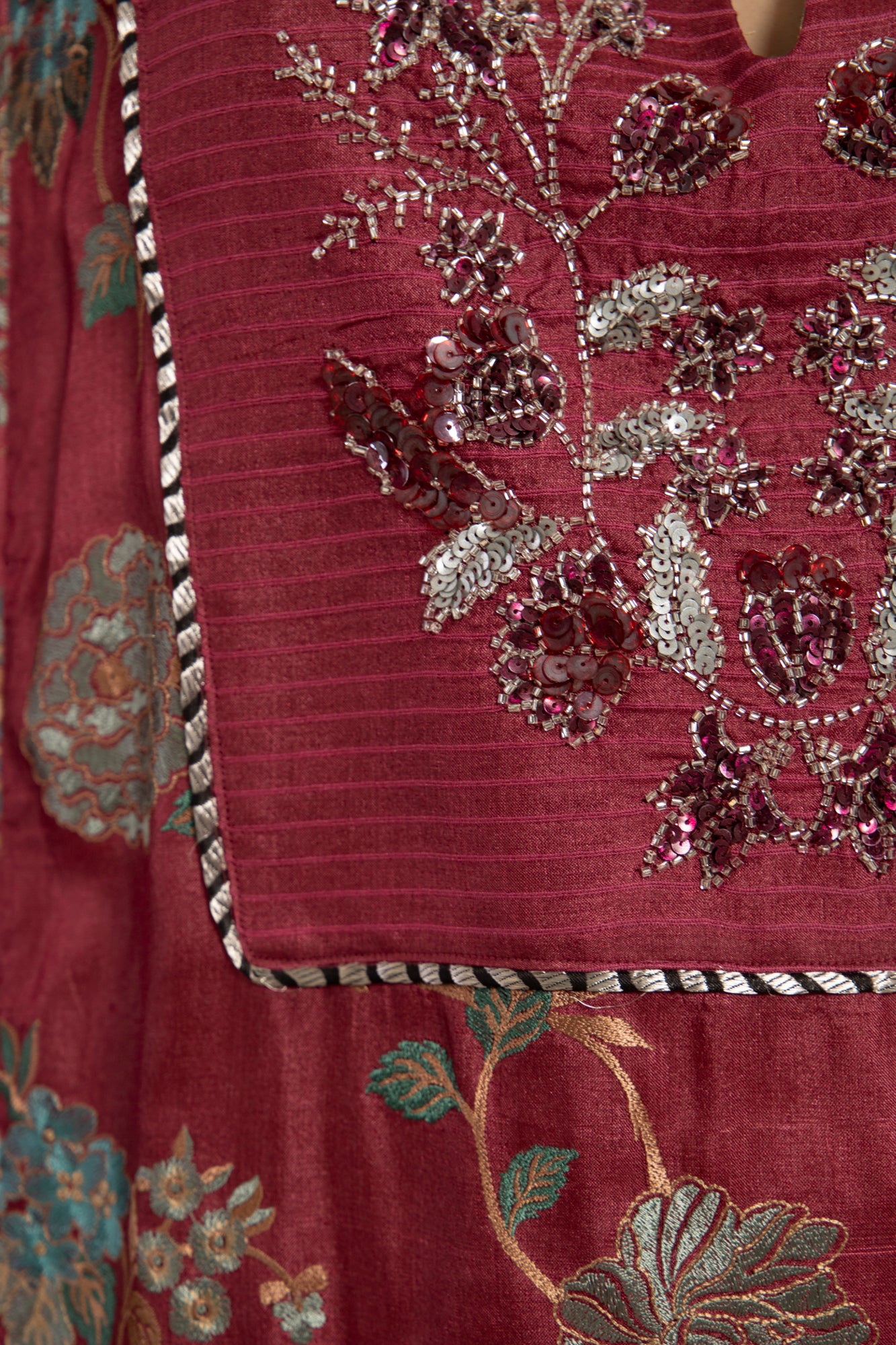 Kawthar Silk Hand Embroidered Burgundy Dress