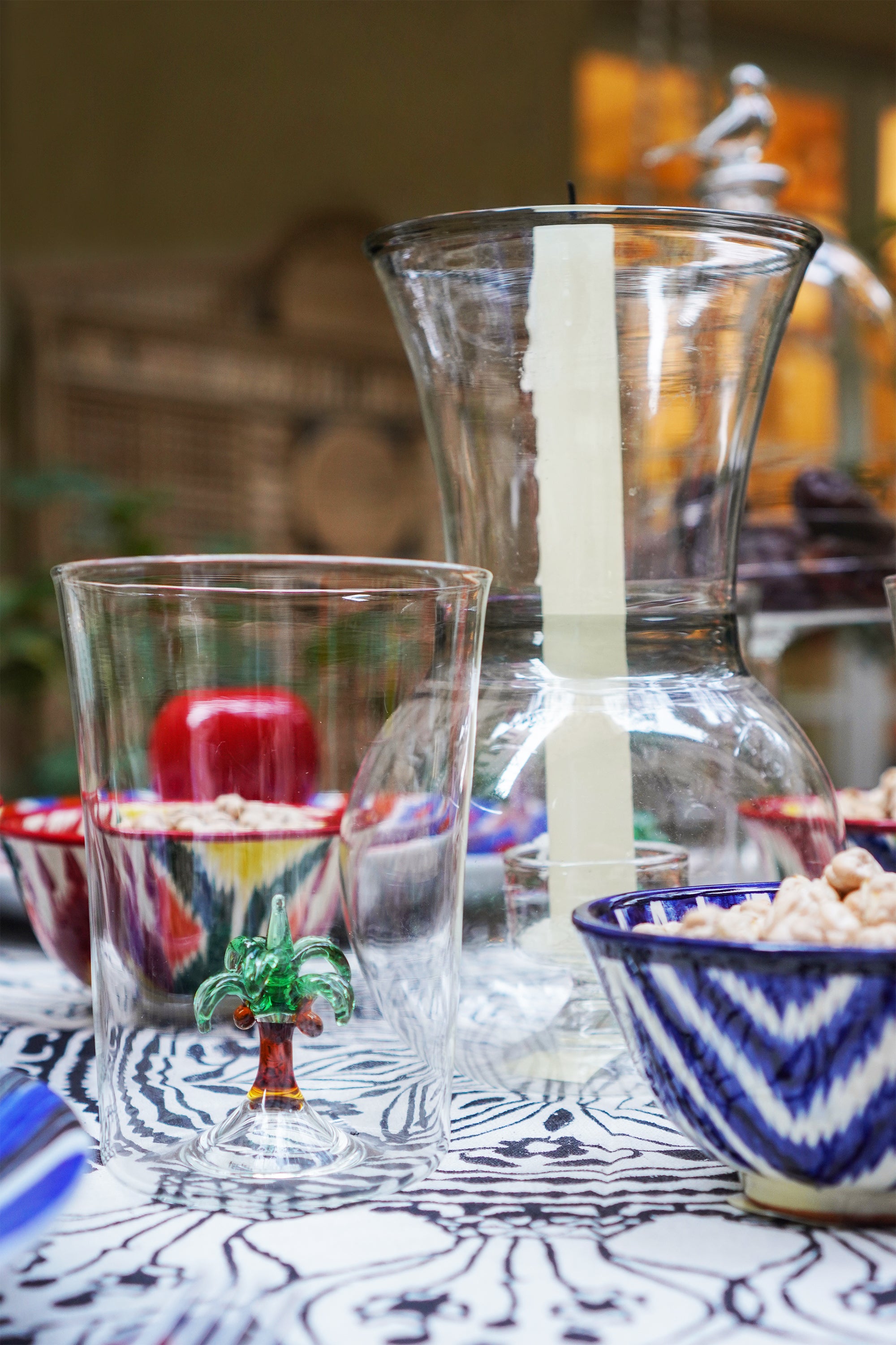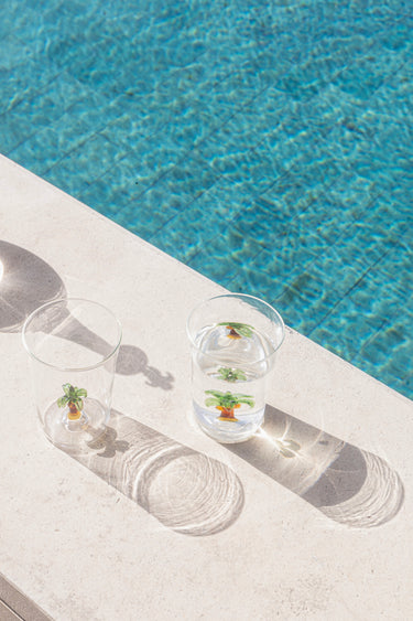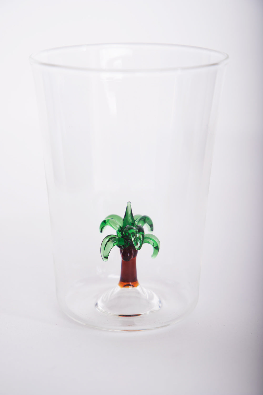 Handmade in crystal-clear glass featuring a captivating imbedded palm tree. A beautiful presence when filled or simply on display.