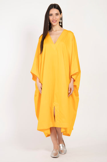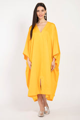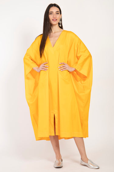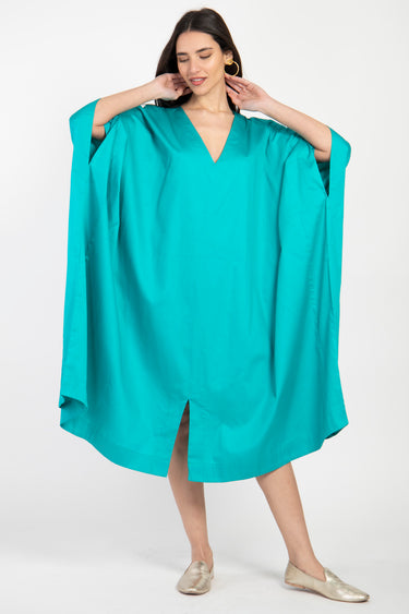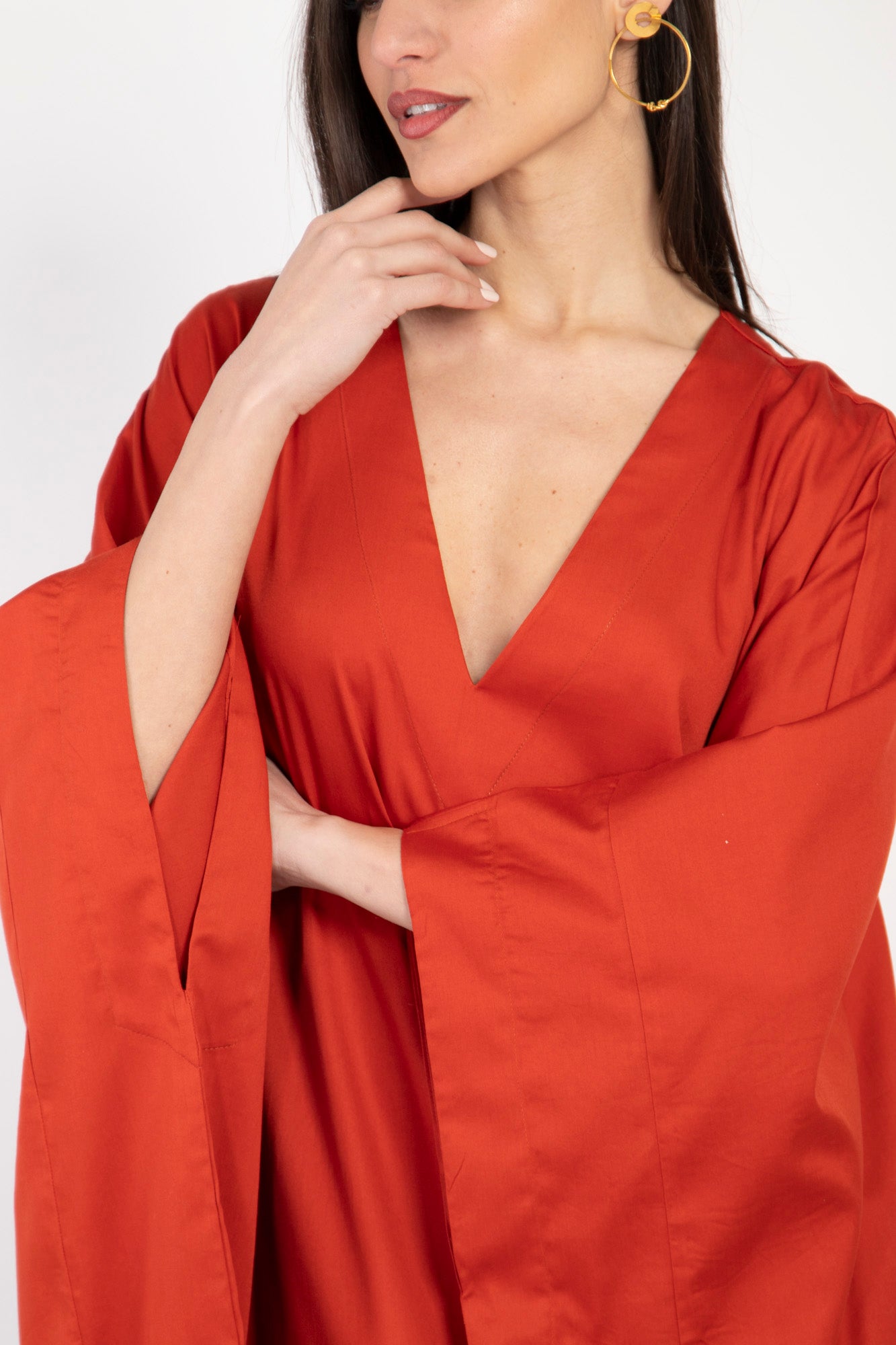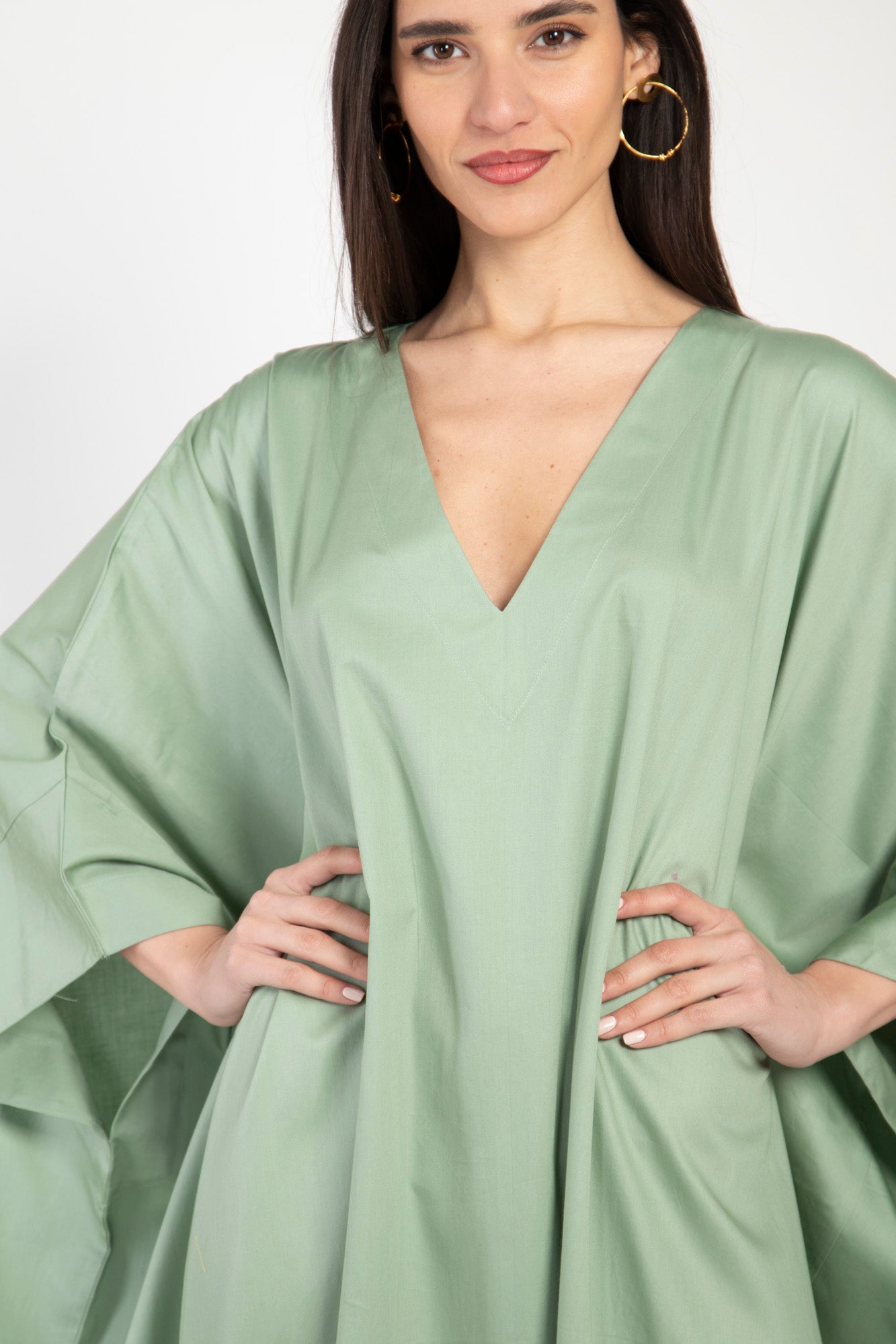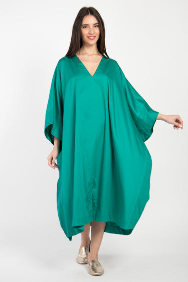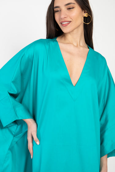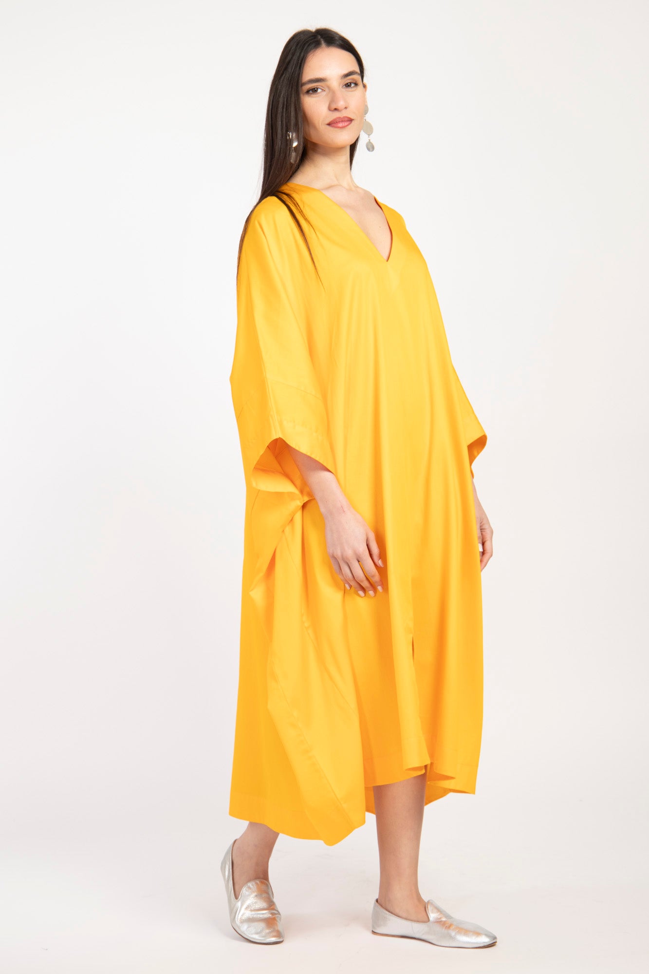 This kaftan jellaba is an in-house staple design. Crafted from cotton satin, the jellaba "Fahed" features a deep V-neck and a loose silhouette that fits all body types. The Fahed jellaba can be worn on its own or as a bikini coverup.