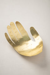 Part of the Echo Collection – This handmade brass hand serves as a container for trinkets or simply as a decorative item. The hand comes in two different finishes, brush brass or dipped in silver.